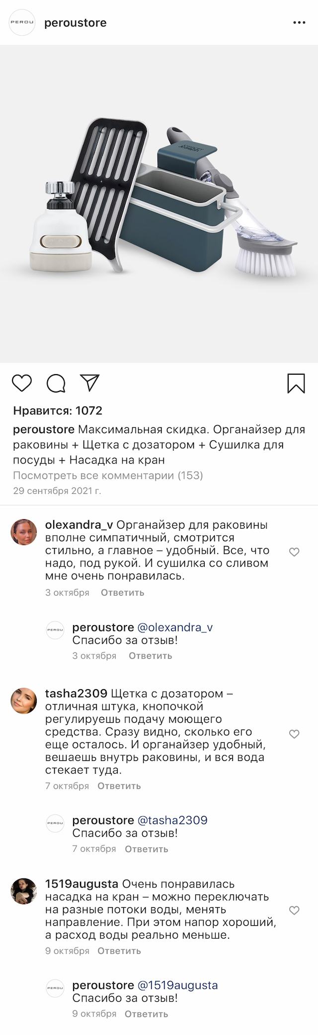 Сушилка снабжена решеткой, на которой сушится посуда, и носиком, через который можно сливать воду. Она легко разбирается и моется. Насадка на кран ограничит поток, не снижая его напор и интенсивность, тем самым позволяя экономить расход воды до 60 %.
