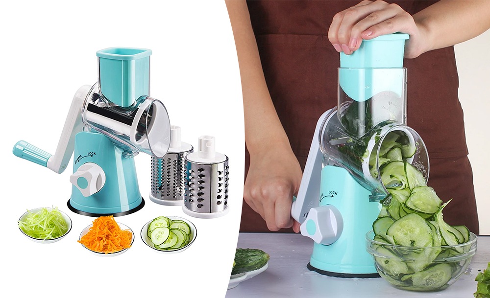 Овощерезка мульти слайсер – это современное решение, позволяющее сократить время нарезки и облегчить труд хозяйки. Три насадки помогут измельчить продукты до нужного размера – натереть на мелкой терке твердые сыры и орехи, порезать более крупно сырые и вареные овощи для салата или пошинковать слайсами.