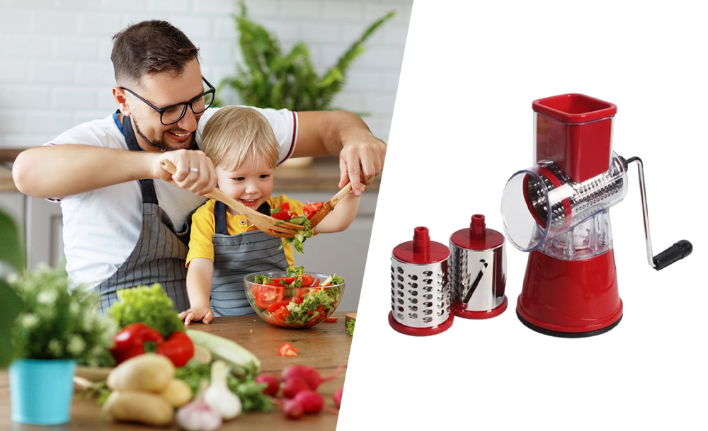 Овощерезка Kitchen Master BIG – это удивительный помощник, который пригодится каждой домохозяйке. С помощью этого приспособления и специальных насадок, входящих в комплект, можно быстро измельчить любые овощи и фрукты для приготовления салатов, натереть их или же сделать аккуратные ломтики для сервировки стола.
