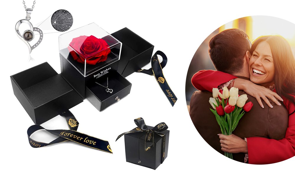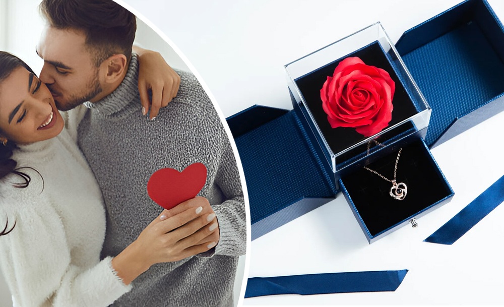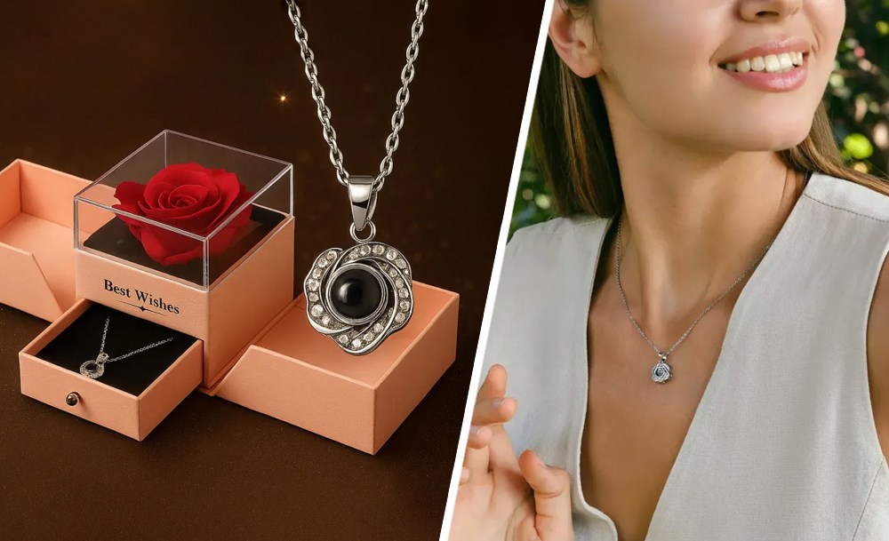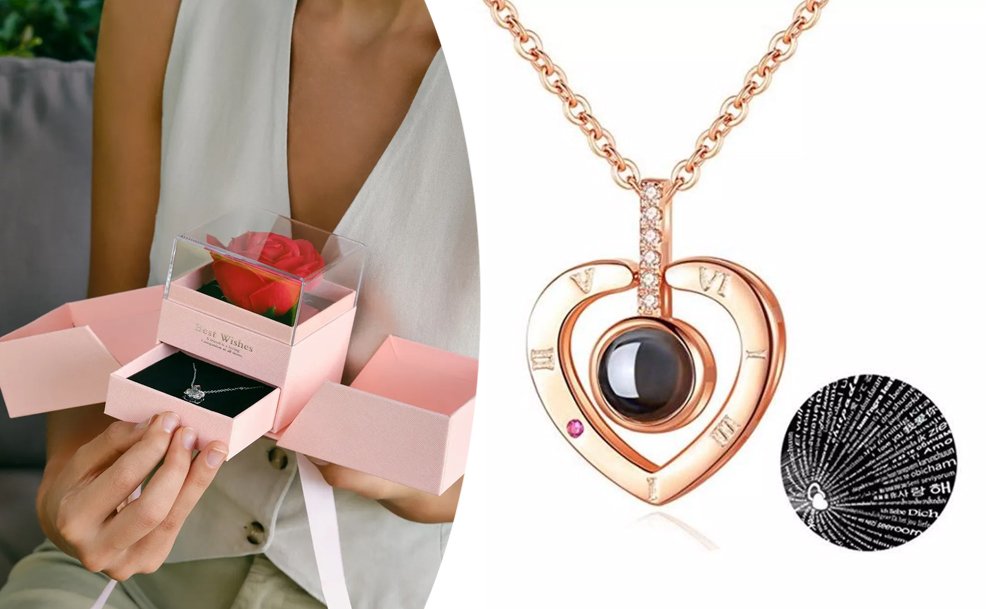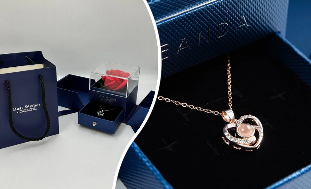 Подарочный набор Best Wishes – это утонченное сочетание красоты и чувств. Внутри — никогда не увядающая вечная роза и кулон с проекцией фразы “I Love You”. Поверните кулон к свету и увидите эти слова, словно из другой реальности. Это действительно магия, спрятанная в маленьком украшении.