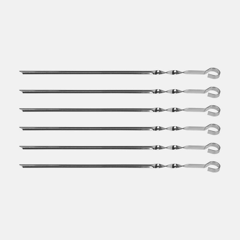 Подставка для шампуров – это отличный выбор для отдыха на природе. С помощью всех его комплектующих можно легко и быстро приготовить на открытом огне любое мясо или рыбу, запечь овощи и колбаски. Шампур – незаменимый помощник при жарке шашлыков.