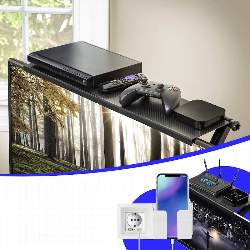 Подставка на телевизор \ монитор в виде аккуратной полочки поможет организовать дополнительное пространство. Она достаточно прочная, чтобы выдержать пульт дистанционного управления, приставку, WiFi-роутер или любые декоративные украшения. Пульт всегда будет на виду, не потеряется, его не достанут дети и домашние питомцы.