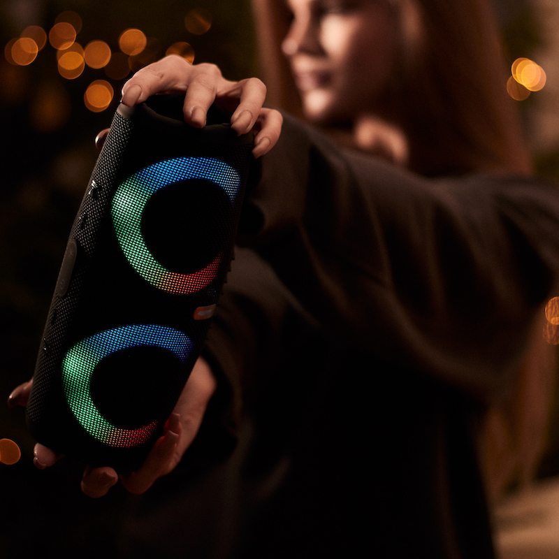 Встроенный аккумулятор гарантирует беспрерывную работу на протяжении 20 часов, а также использование его как пауэрбанк для подзарядки мобильных устройств. Колонка оснащена высокой степенью защиты и полной пыле- и водонепроницаемостью.