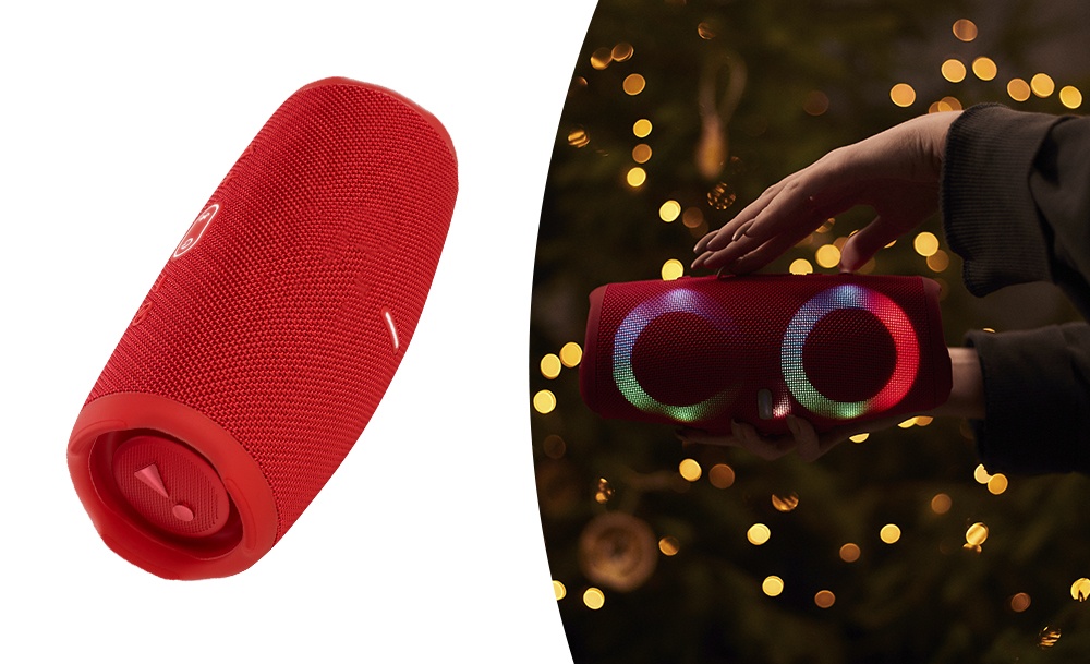 Портативная колонка UKC Charge 5 с подсветкой – универсальная акустическая система, обеспечивающая чистое и насыщенное звучание. Эта модель позволит слушать любимую музыку дома, на природе, в поездках. Встроенный микрофон с активным шумоподавлением дает возможность разговаривать по телефону на громкой связи, обеспечивая чистый звук.