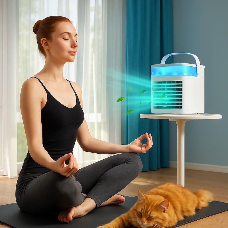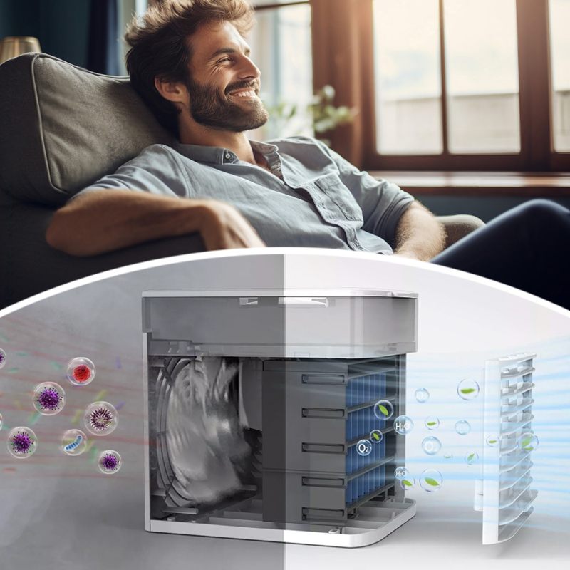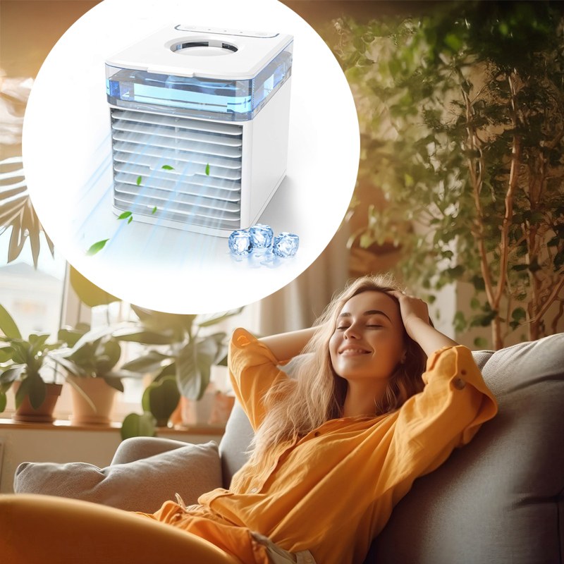 Портативный кондиционер Air Cooler Fan 7 с увлажнителем воздуха — это компактное и эффективное устройство для охлаждения и увлажнения воздуха в помещении. Благодаря встроенному вентилятору и водяному фильтру, прибор создаёт комфортный микроклимат, снижая температуру и устраняя сухость.