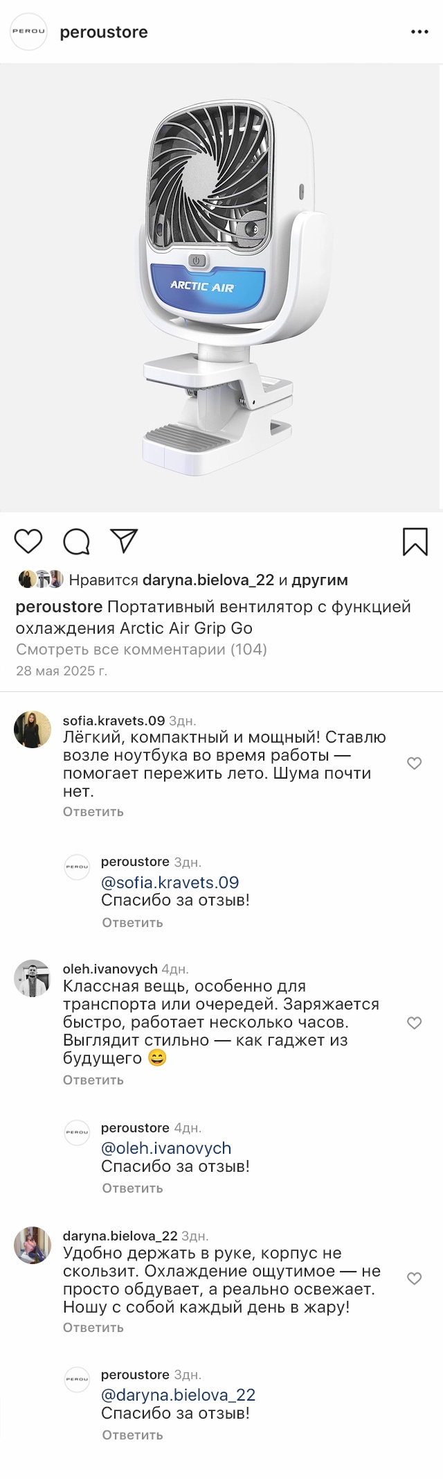 Благодаря мощному воздушному потоку и встроенной системе охлаждения, Grip Go моментально освежает, где бы вы ни находились: на прогулке, в дороге или даже в офисе. Заряжается через USB и работает до нескольких часов — идеальный помощник в жаркие дни!