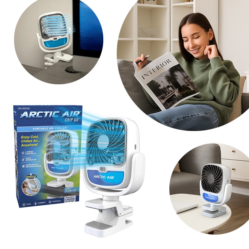 Arctic Air Grip Go — портативный вентилятор с функцией охлаждения, созданный для максимального комфорта в любую погоду. Компактный, лёгкий и удобный — он легко крепится к телефону, рюкзаку или сумке, позволяя наслаждаться прохладным воздухом в любое время дня.