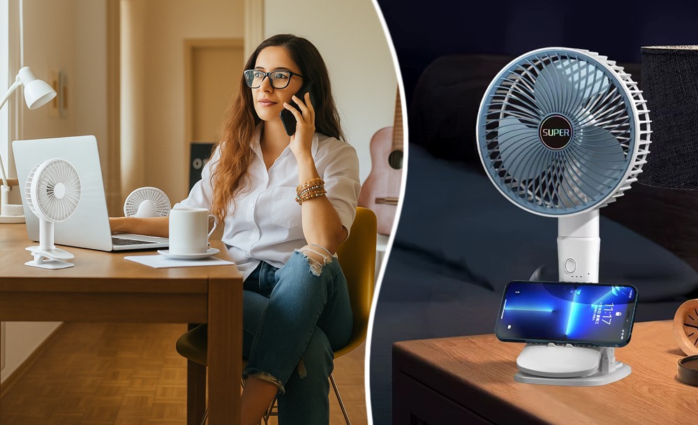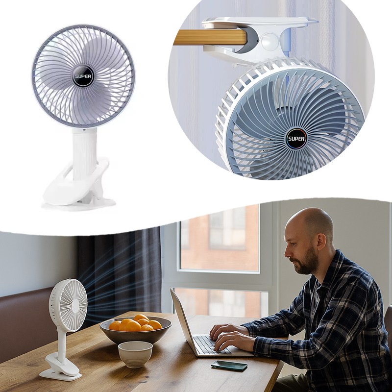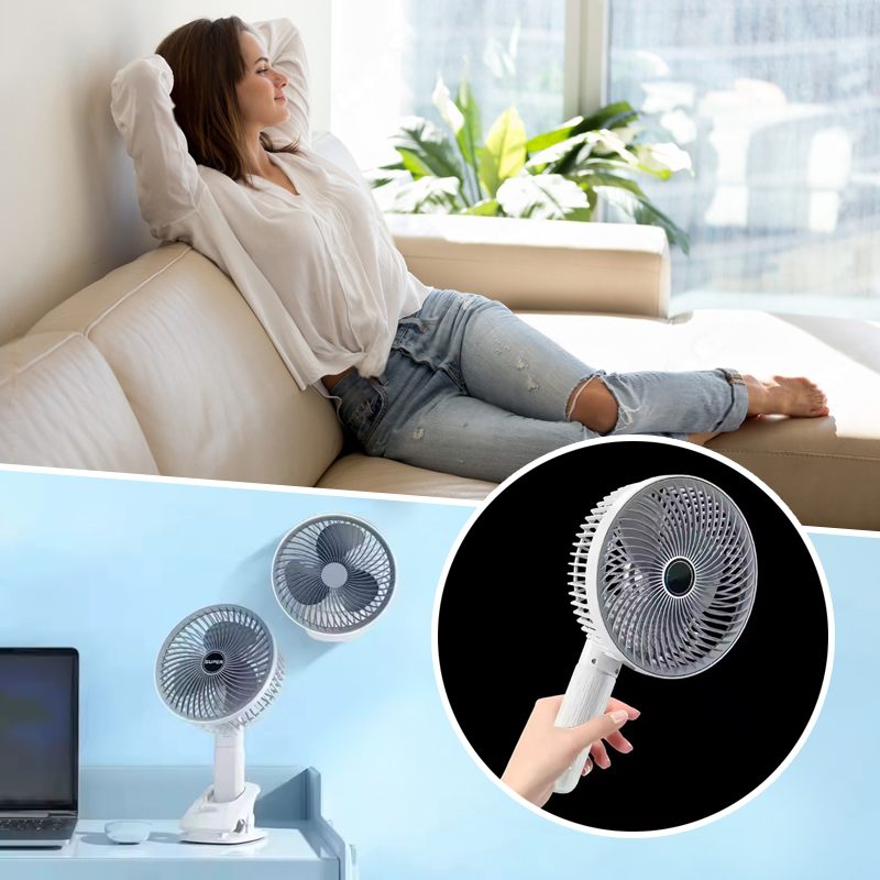 Портативный вентилятор Clip+Mobile Stand — это надёжное и компактное решение для персонального охлаждения в любых условиях. Благодаря мощному потоку воздуха и удобной прищепке устройство легко крепится на стол, полку, коляску или кровать. Идеально подходит для дома, офиса, поездок и отдыха на природе.