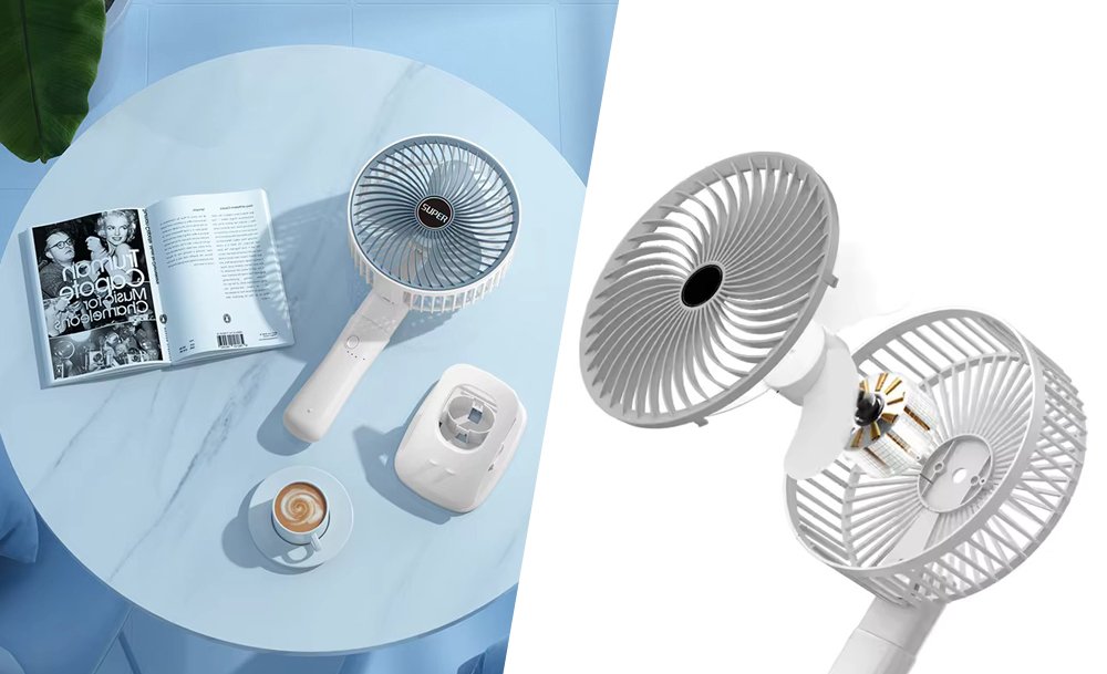 Вентилятор оснащён подставкой для смартфона, имеет три режима скорости, работает тихо и автономно. Комфорт и мобильность — всегда под рукой.