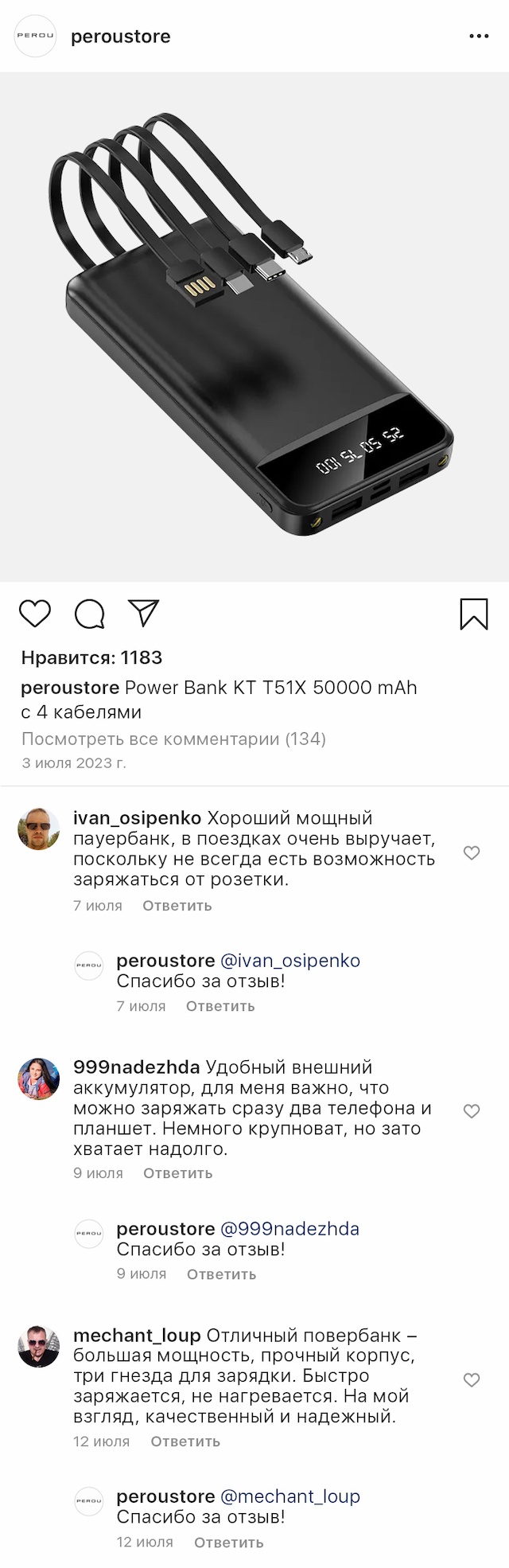 Повербанк KT T51X 50000 с 4 кабелями значительно увеличит время автономной работы смартфона, не оставив без связи в самый неподходящий момент везде, где это необходимо – в путешествиях, длительных поездках, отдыхе на природе при отсутствии других источников энергии.