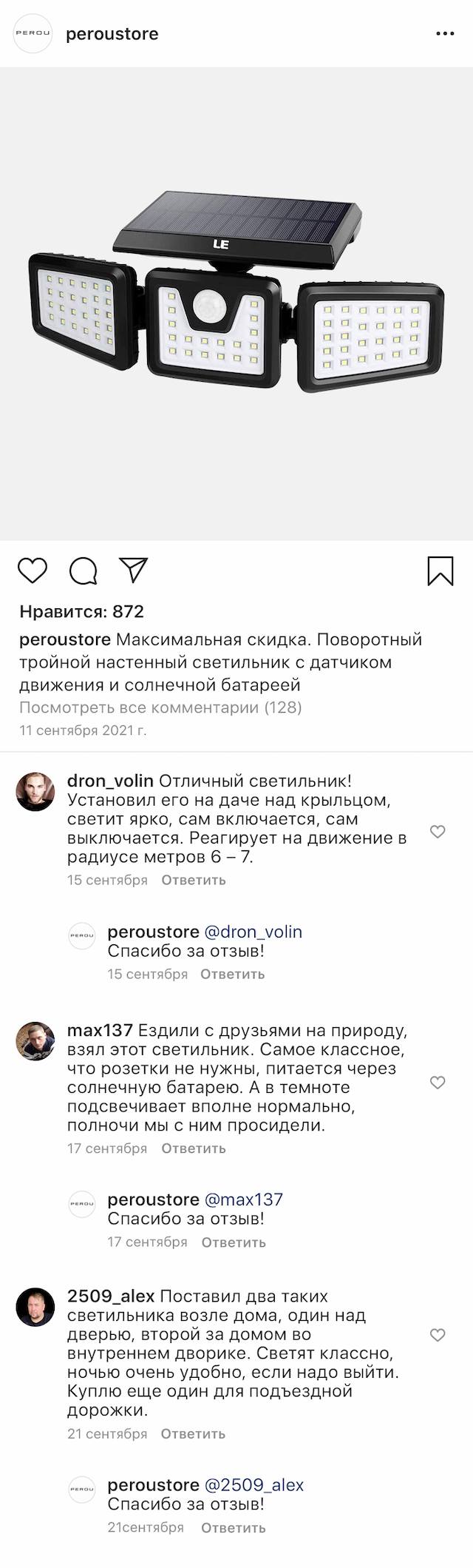 Светильник не нужно подключать к источнику электроэнергии: солнечная батарея накапливает заряд света в дневное время и ярко светит в темноте. Поворотный механизм позволяет направить световой поток в нужном направлении. Светильник оснащен датчиком движения: он включается при приближении человека и сам выключается, если движения нет.