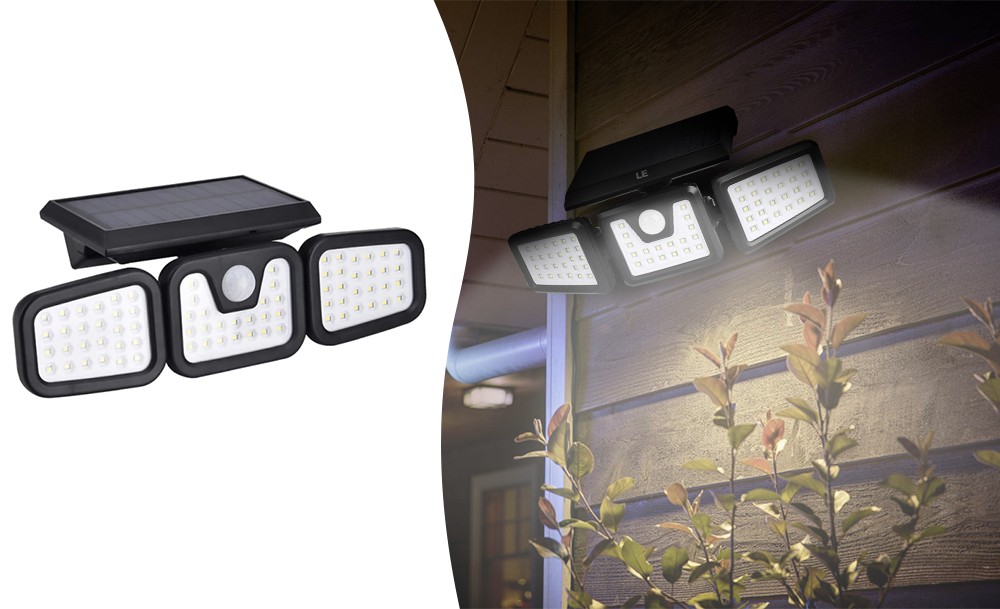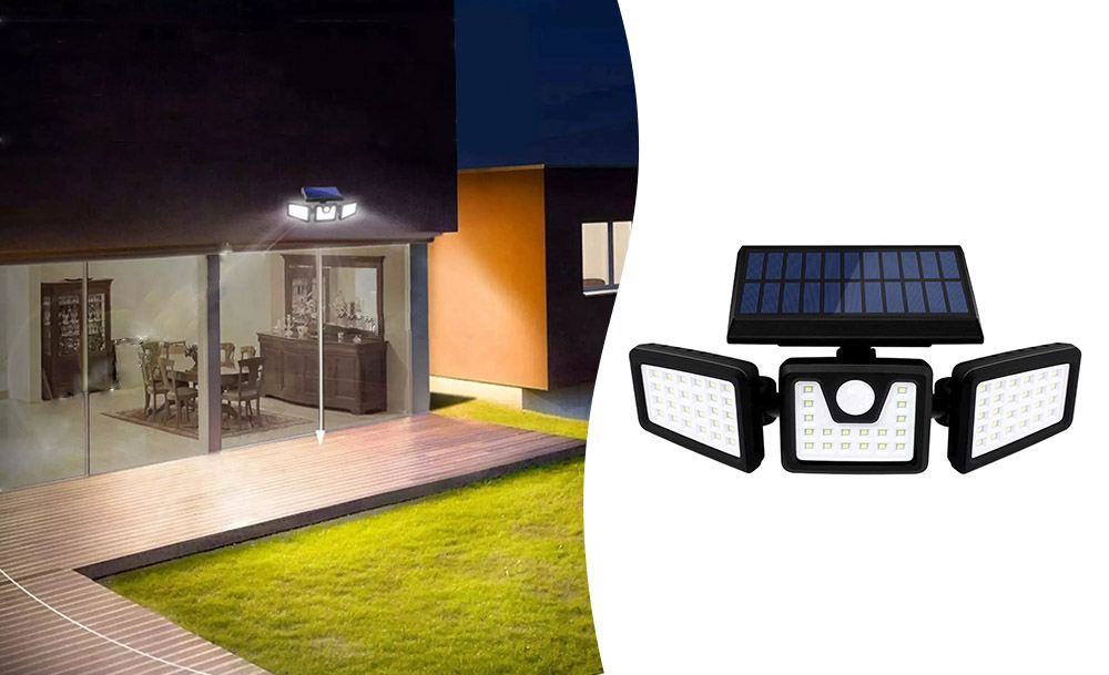 Поворотной тройной настенный светильник с датчиком движения и солнечной батареей – это прекрасная возможность сделать уютным и комфортным внутренний дворик около дома или на даче, осветить дорожку, подъездные пути и даже палаточный лагерь. Его можно закрепить на любой поверхности, где это необходимо.