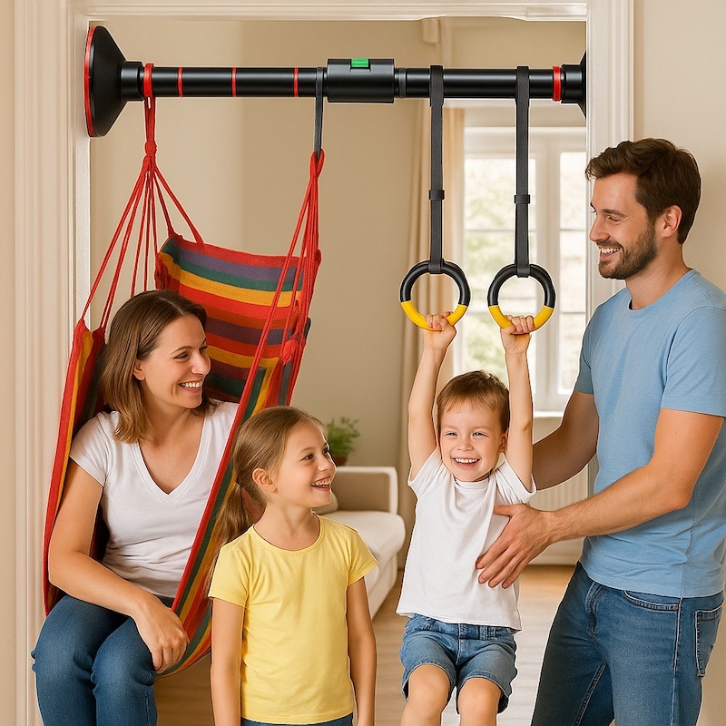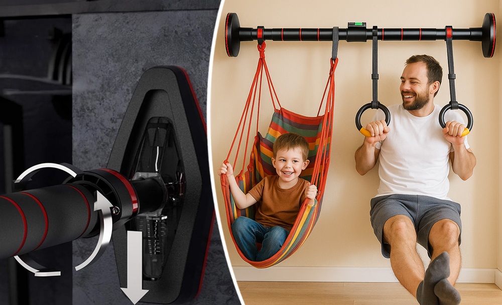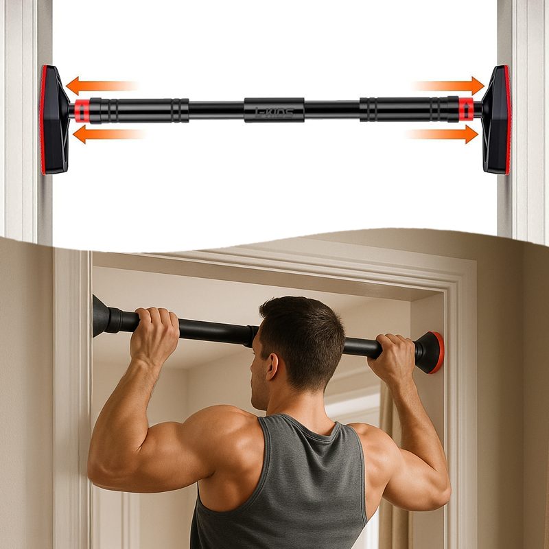 Раздвижной турник Pull-Up Bars 3 в 1 — универсальное спортивное оборудование для всей семьи. Прочная металлическая конструкция надёжно фиксируется в дверном проёме без сверления и выдерживает значительные нагрузки, обеспечивая безопасность при тренировках.