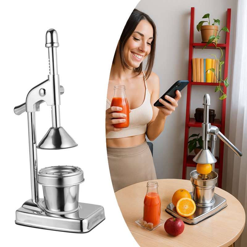 Ручная соковыжималка Juicer Fruit Press — надёжный и простой в использовании прибор для свежевыжатых соков дома. Металлический корпус и пресс обеспечивают прочность и долговечность, а эргономичная ручка позволяет легко выжимать сок из фруктов и цитрусовых. Вы получите максимум сока без лишних усилий и шума.