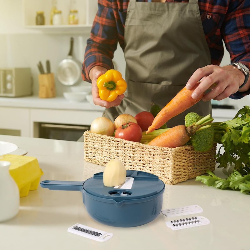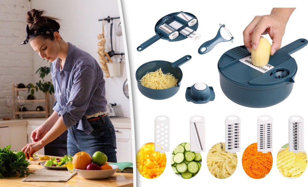 Овощерезка ручная 12 в 1 с чашей объемом 1,8 литра – это удобное и эффективное устройство для нарезки и измельчения овощей и фруктов. Благодаря своим многочисленным функциям терка позволяет быстро и легко приготовить разнообразные блюда, салаты и закуски.