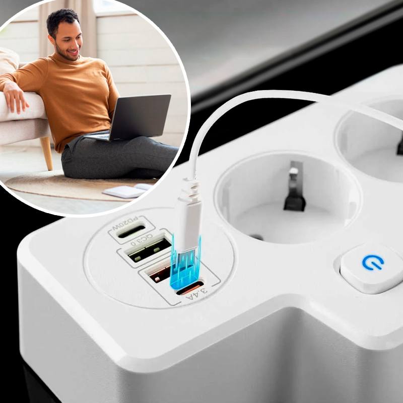 Высококачественный сетевой фильтр с 3 евророзетками, USB-портами и Type-C обеспечит безопасность и стабильность работы вашей техники. Тройник содержит сетевые разъемы, которые обеспечивают защиту от короткого замыкания и перегрузки, а встроенный светильник можно использовать в качестве ночника.