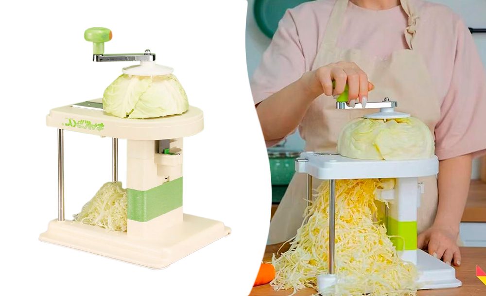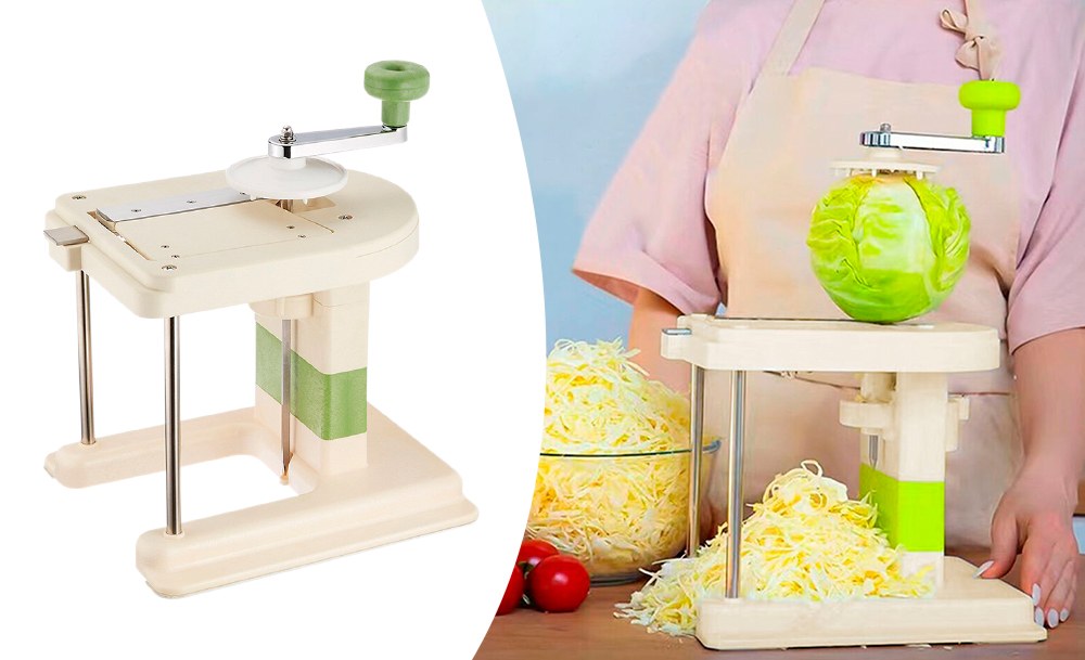 Механическая шинковка для капусты – это мощный и эффективный помощник на кухне для сезонных заготовок и приготовления повседневных блюд с капустой!Она очень простая в использовании. Зафиксируйте кочерыжку, установите необходимую ширину нарезки, покрутите ручку. Готово!