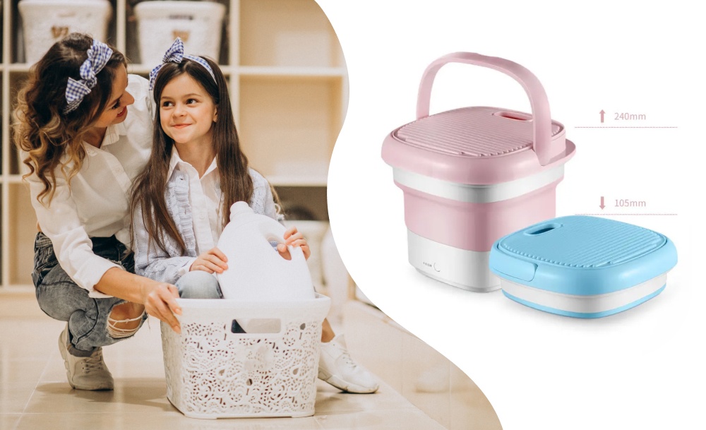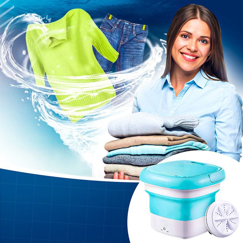Складная стиральная машина – это идеальный вариант для стирки небольших вещей общим весом до 800 грамм: рубашек и футболок, носков и нижнего белья, детской одежды, полотенец и т.д. Машинка выполнена в виде складного ведра из высокопрочного силикона.