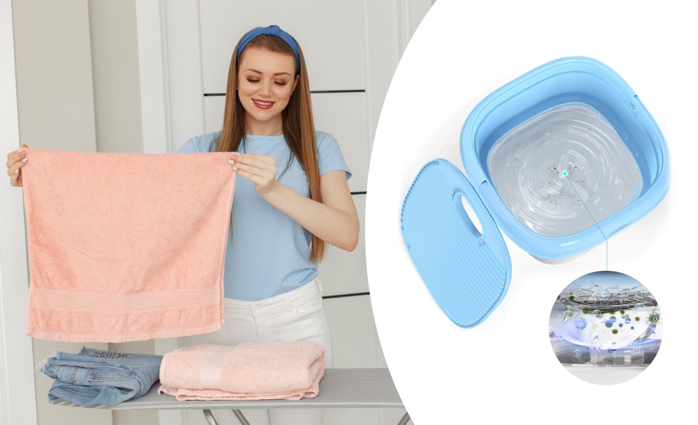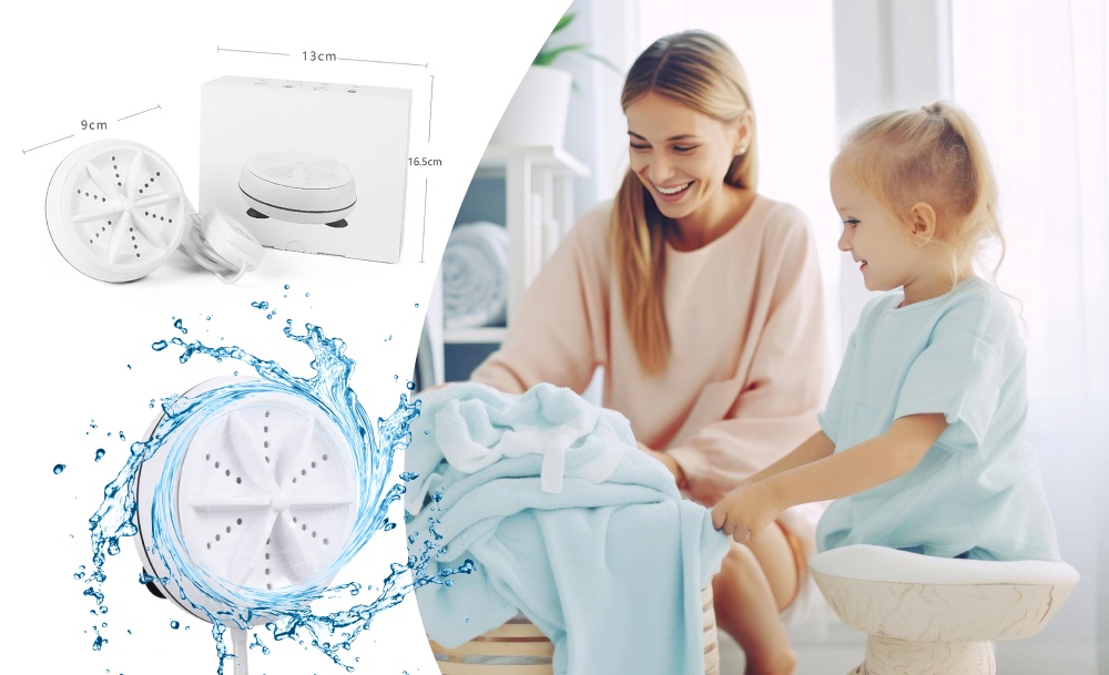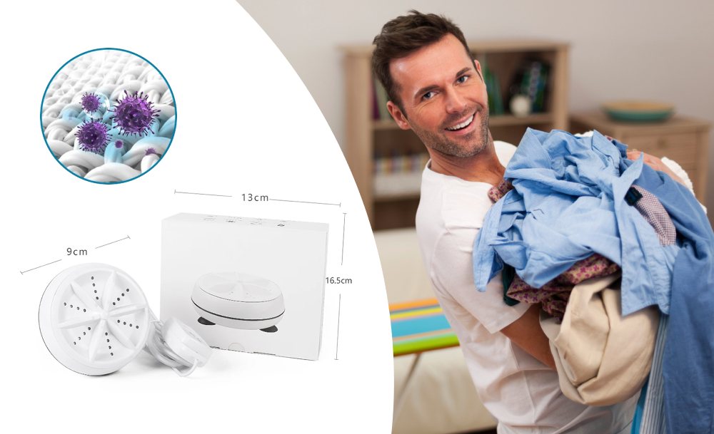 Портативная ультразвуковая стиральная машина с мини-USB – это надежное, современное устройство нового поколения. Ультразвук легко проникает между волокнами ткани, удаляя частицы грязи с поверхности и очищает внутреннюю структуру ткани, повышает отбеливающие свойства порошка.