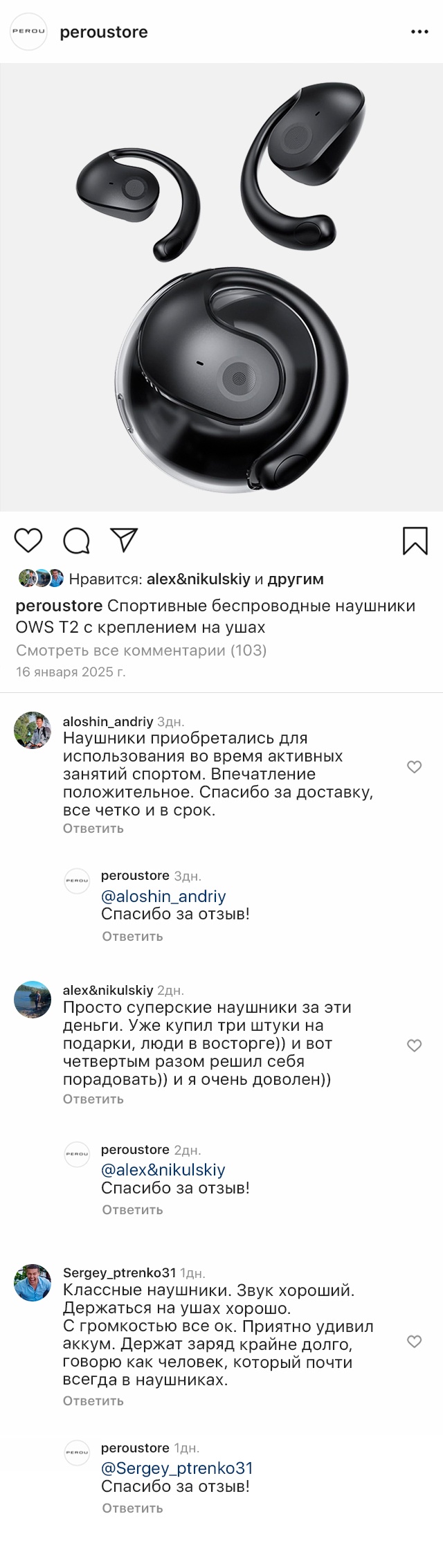 Беспроводные Bluetooth-наушники OWS T2 с встроенным микрофоном и зарядным кейсом созданы для комфортного и удобного использования. Специальные спортивные крепления надежно фиксируют наушники на ухе, а удобная конструкция и легкий вес позволяют долго слушать музыку без малейшего дискомфорта.