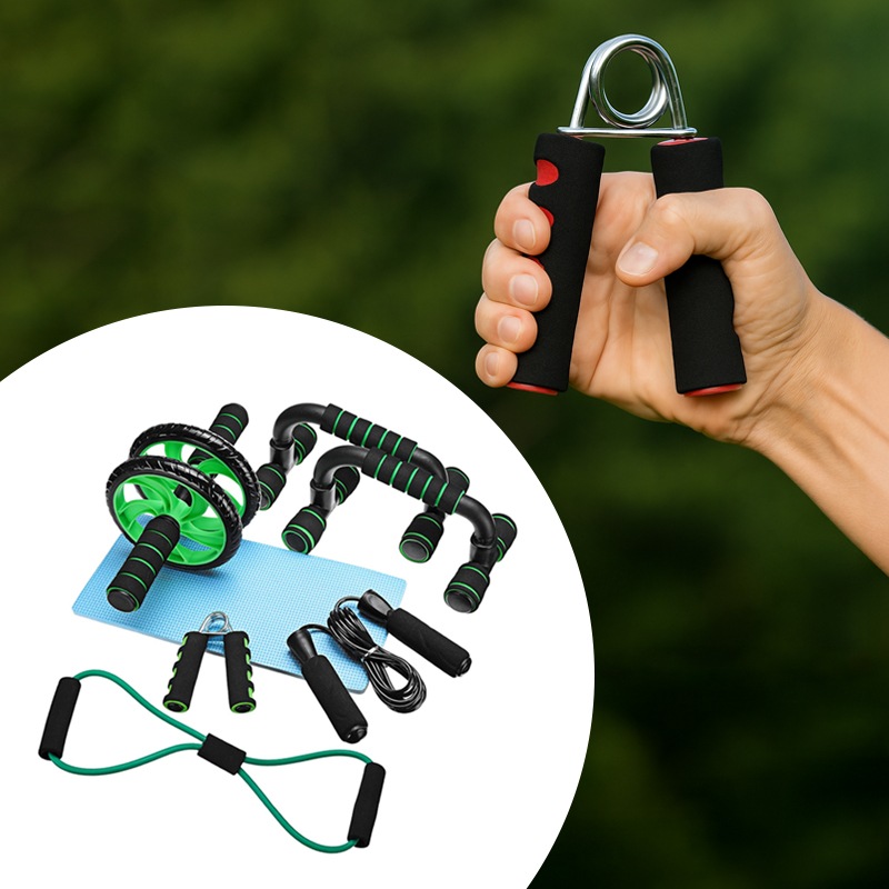 Спортивный набор 6 в 1 — это универсальное решение для домашних тренировок. В комплект входят ролик для пресса, упоры для отжиманий, скакалка, эспандер, фитнес-резинка и коврик. Все элементы подобраны так, чтобы вы могли проработать основные группы мышц, улучшить выносливость и поддерживать форму, не выходя из дома.
