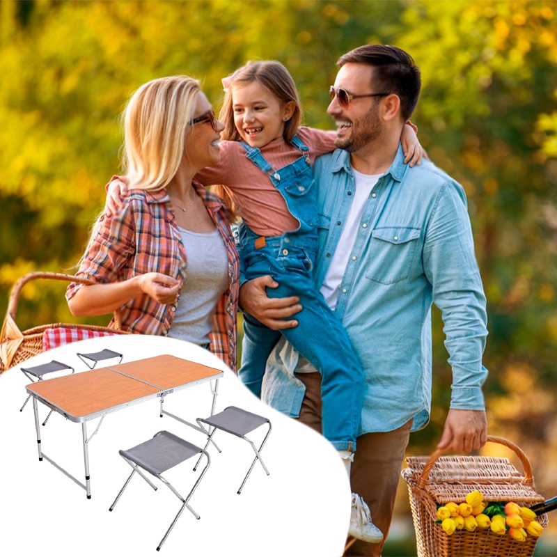 Складной стол для пикника + 4 стула станет незаменимым помощником в походах и на отдыхе – лёгкий, компактный и практичный, он не станет обременительным грузом и значительно преобразит Ваш отдых. Хорошо подойдет для небольших застолий и станет просто незаменим при выезде на природу.