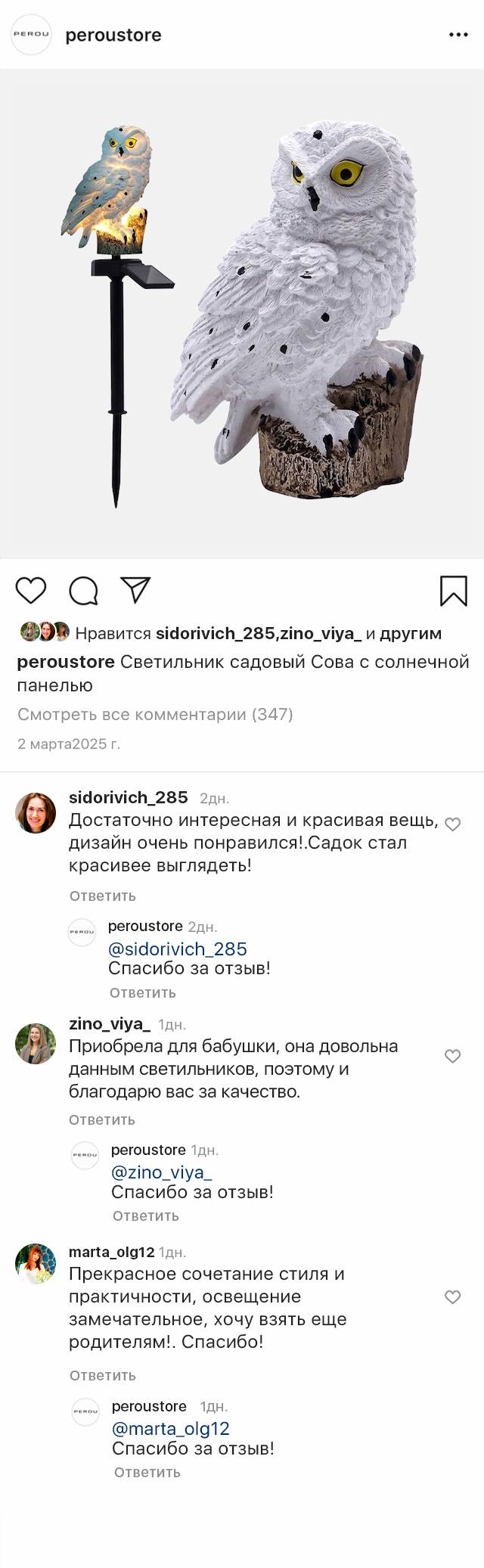 Декоративный фонарь в форме совы – это идеальное решение для украшения вашего сада, дачи или придомовой территории. Его стильный дизайн и теплый белый свет создают уютную атмосферу в любое время суток.