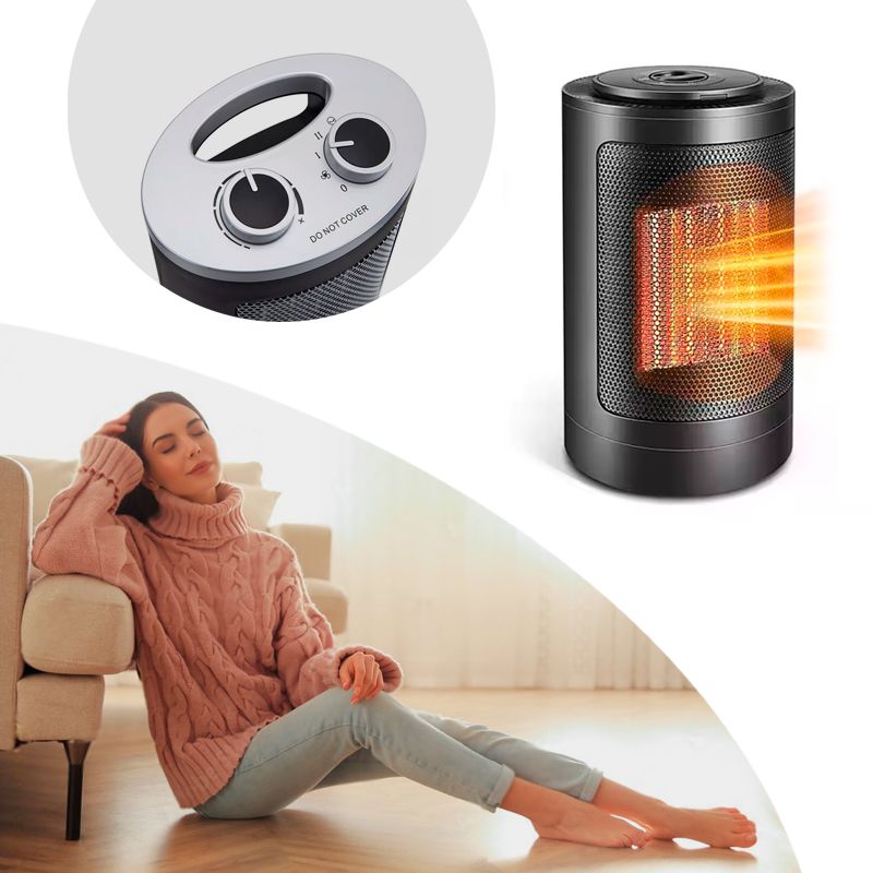 Мощность устройства составляет 1500 Вт, поэтому можно легко обогреть большое помещение до 20 квадратных метров. Предусмотрен индикатор работы. Три режима скорости позволяют обогреть комнату настолько быстро, сколь это необходимо.