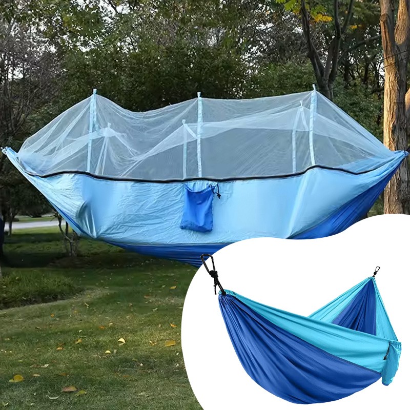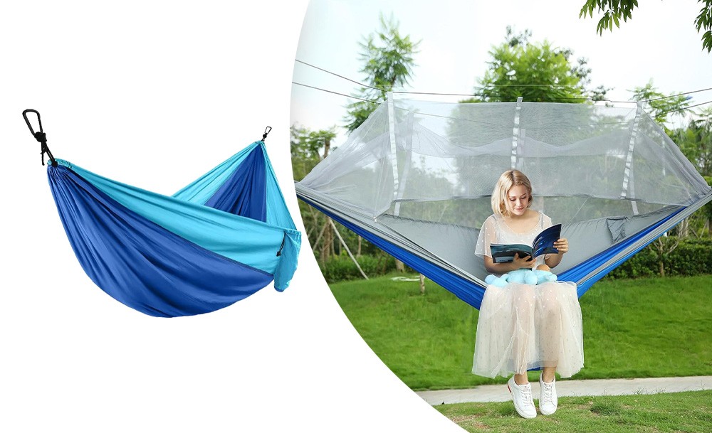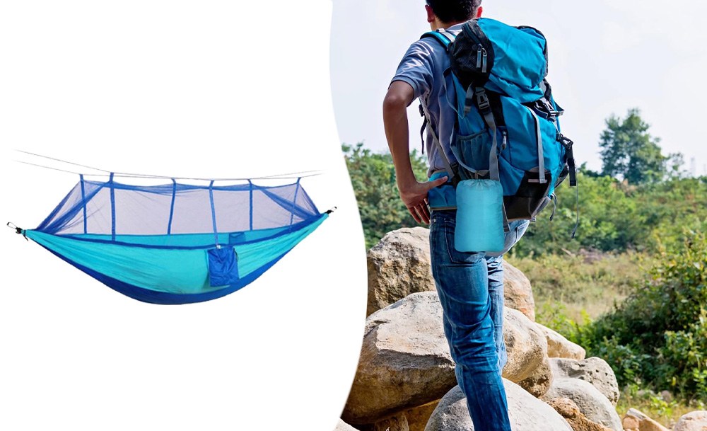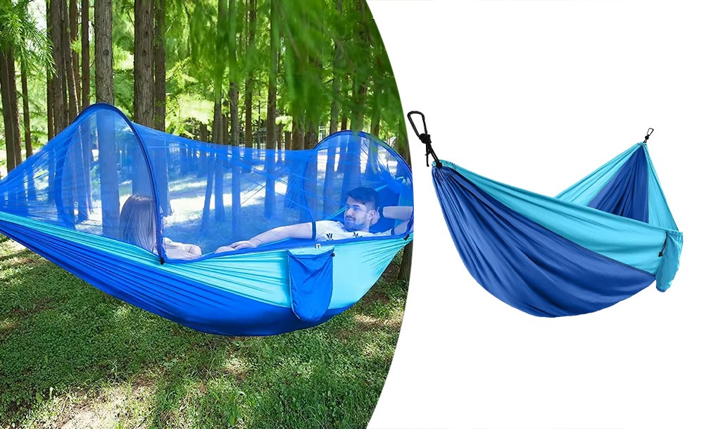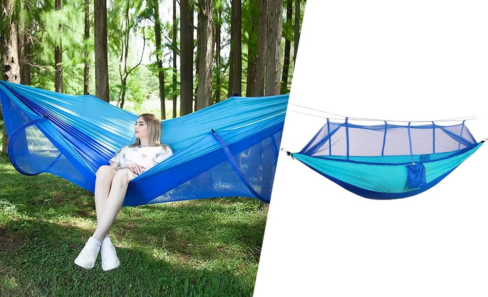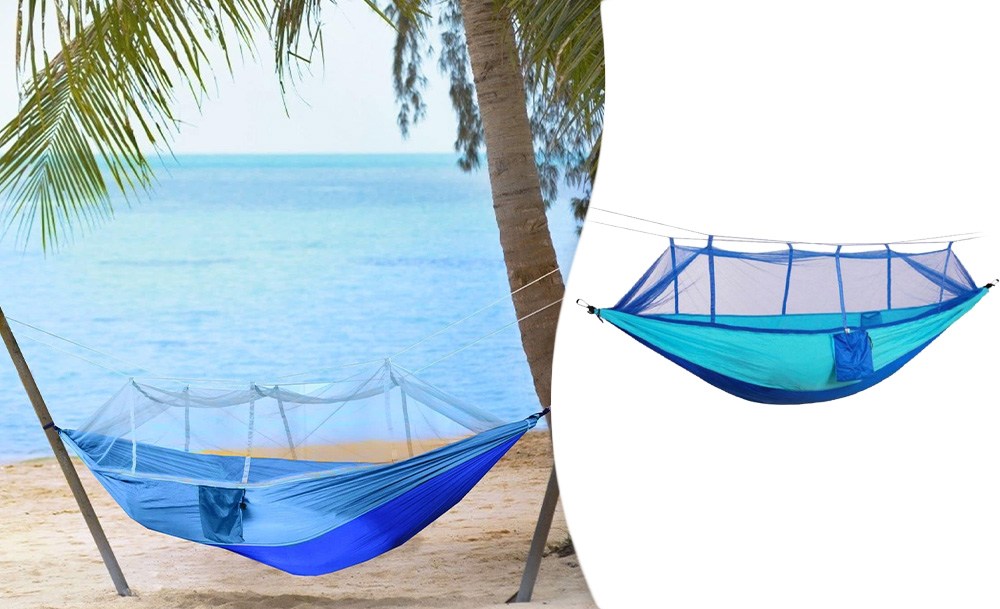 Гамак походный с москитной сеткой надежно защитит вас от летающих насекомых и их укусов. Такой гамак наверняка пригодится вам на даче, в походе, на рыбалке.
