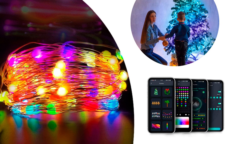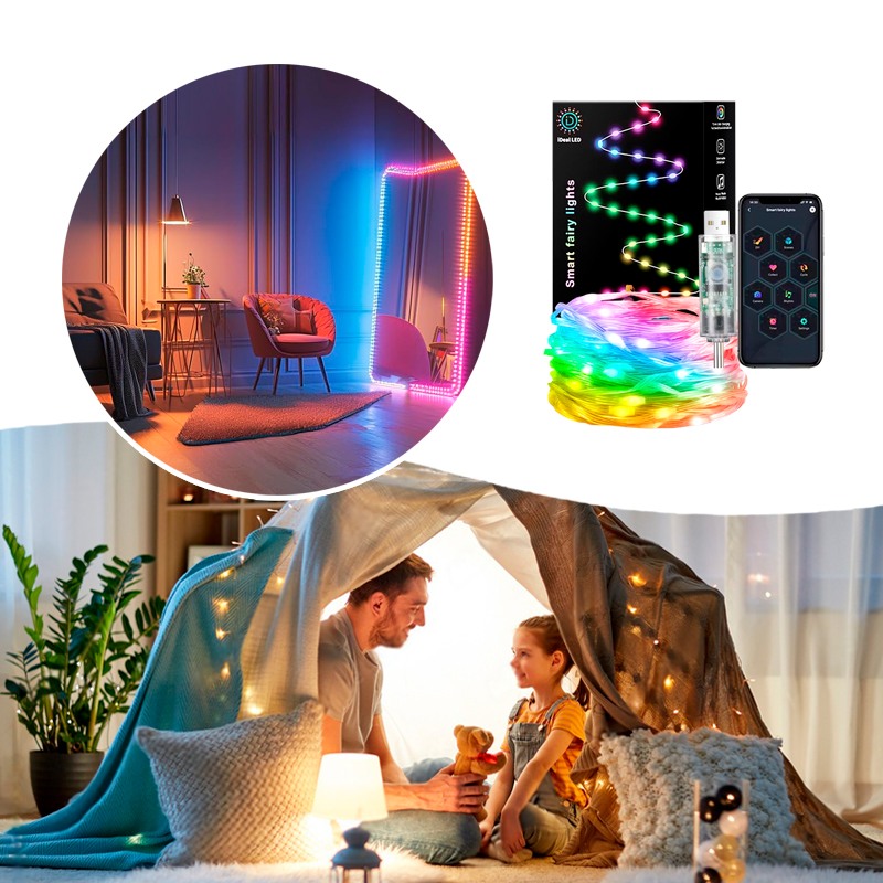 Умная смарт-гирлянда с управлением через смартфон и пульт – это удивительный декоративный элемент, превращающий пространство в яркий оазис света и цвета.