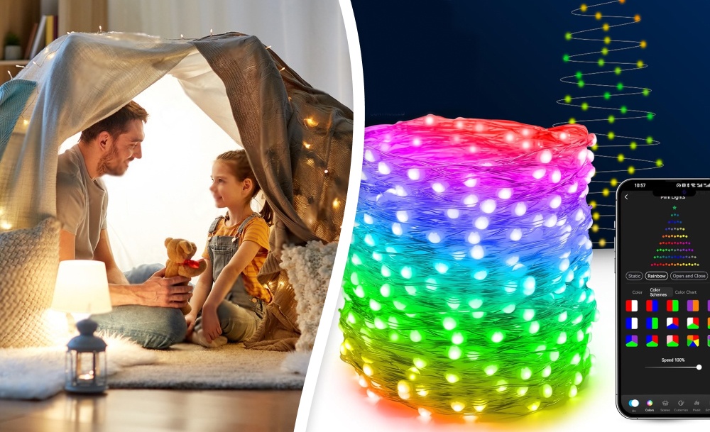 С помощью пульта дистанционного управления или через мобильное приложение вы можете изменять цвета, регулировать яркость и выбирать различные режимы свечения, создавая неповторимую атмосферу в соответствии с вашим стилем и настроением. Гирлянда не боится влаги, дождя, ветра. Ее можно устанавливать дома, в квартире, украшать елку или фасад на улице.