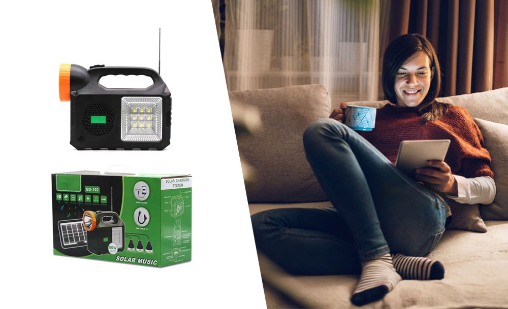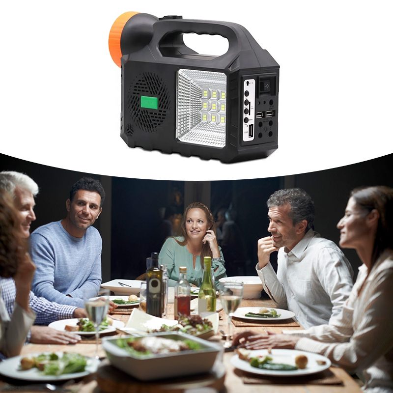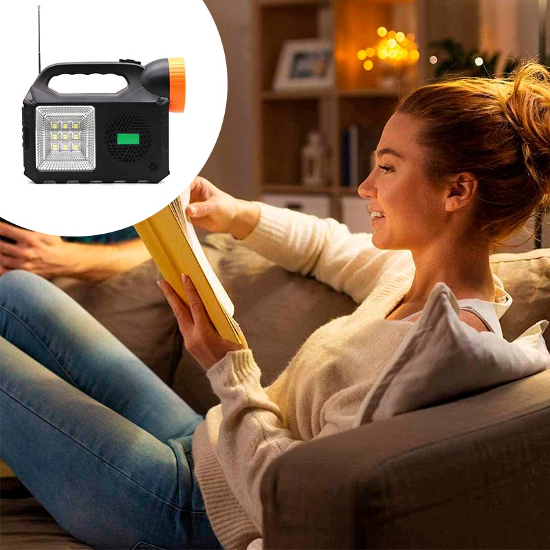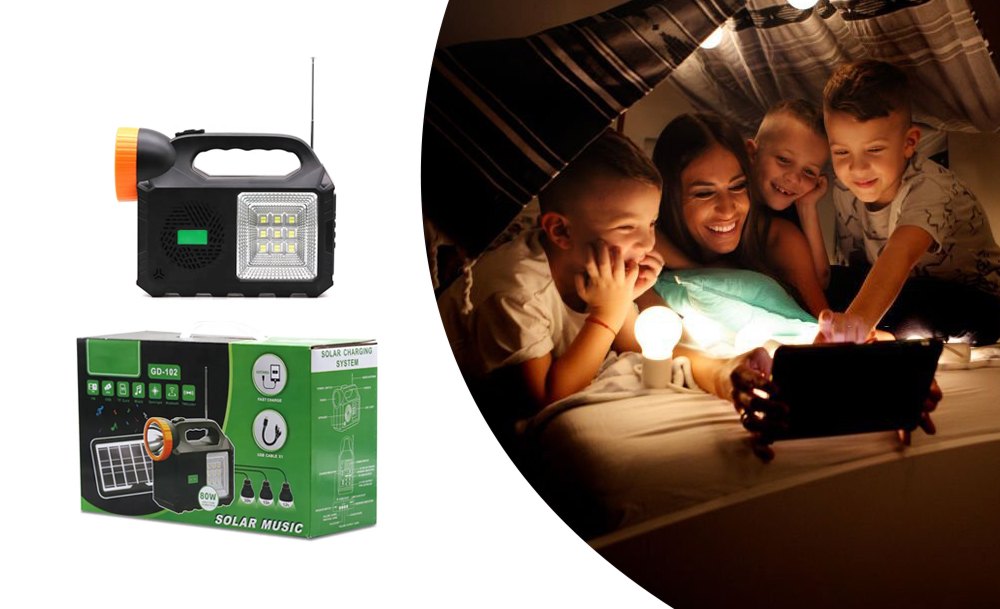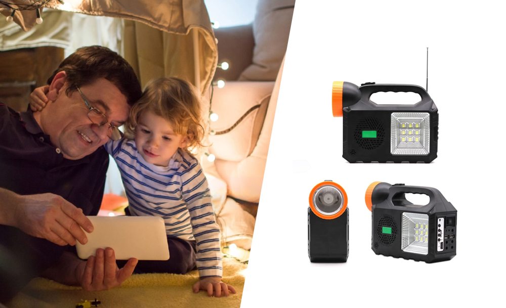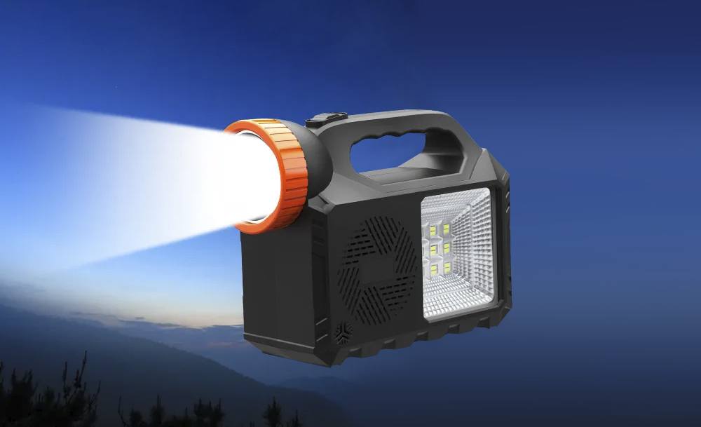 Мощный прожектор, фонарь и 3 яркие лампочки позволяют осветить достаточно большую площадь. Встроенное FM-радио и МP3 дадут возможность слушать музыку и аудиофайлы. А с функцией Power Bank можно зарядить телефоны, чтобы не остаться без связи в самый неподходящий момент.