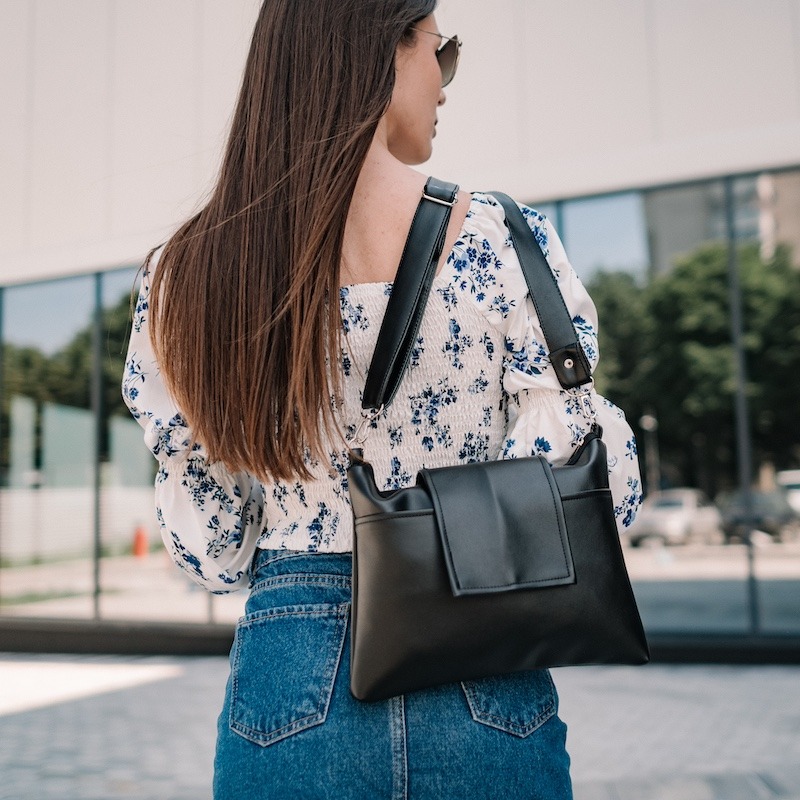 Прочный регулируемый ремешок позволяет удобно носить ее через плечо или в руке. Наружный клапан надежно закрывает замок – молнию, предотвращая ее поломку. Качественные материалы изделия позволят использовать его длительное время, мягкая экокожа не потрескается и не поцарапается. Сумка будет долго радовать владелицу своим внешним видом.