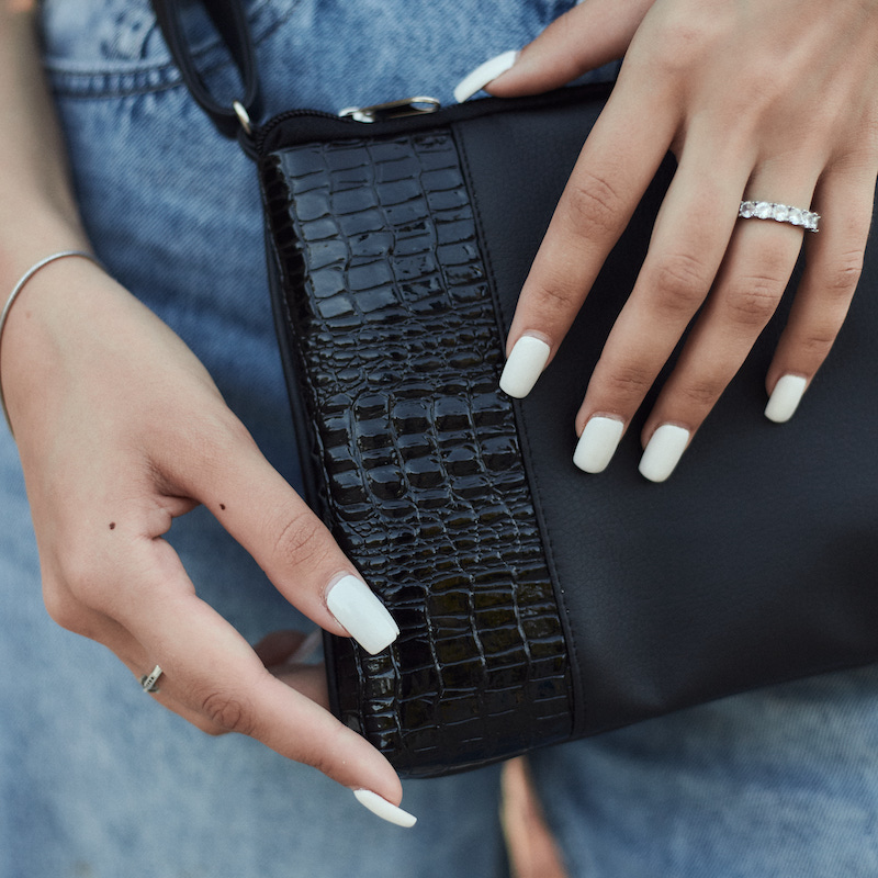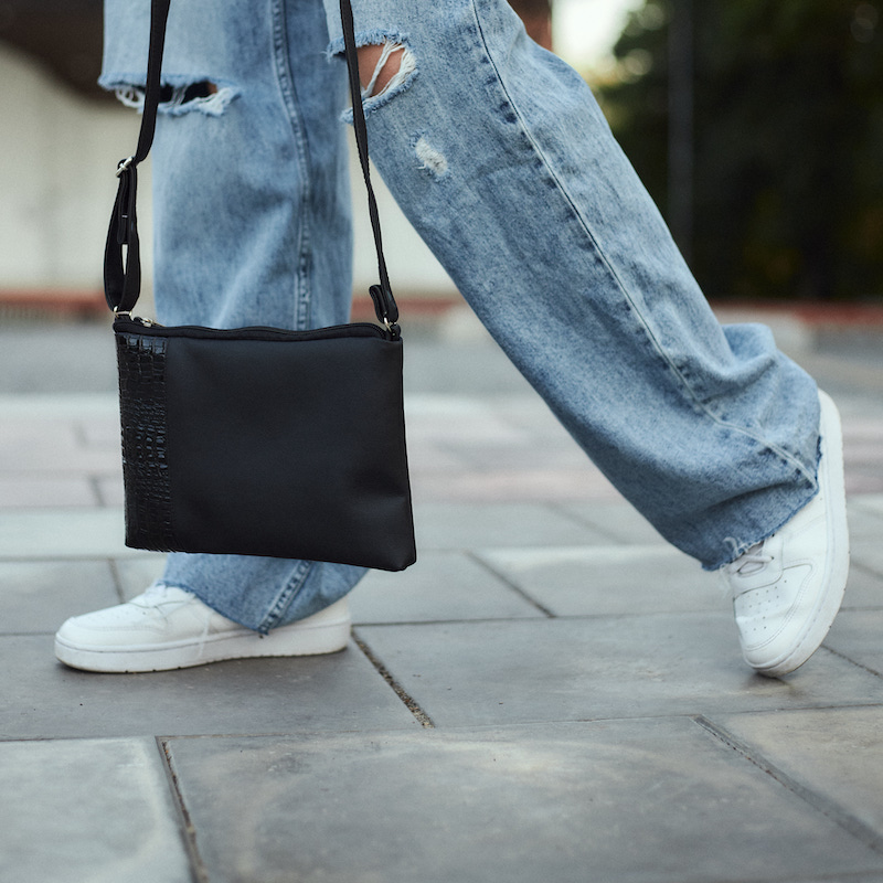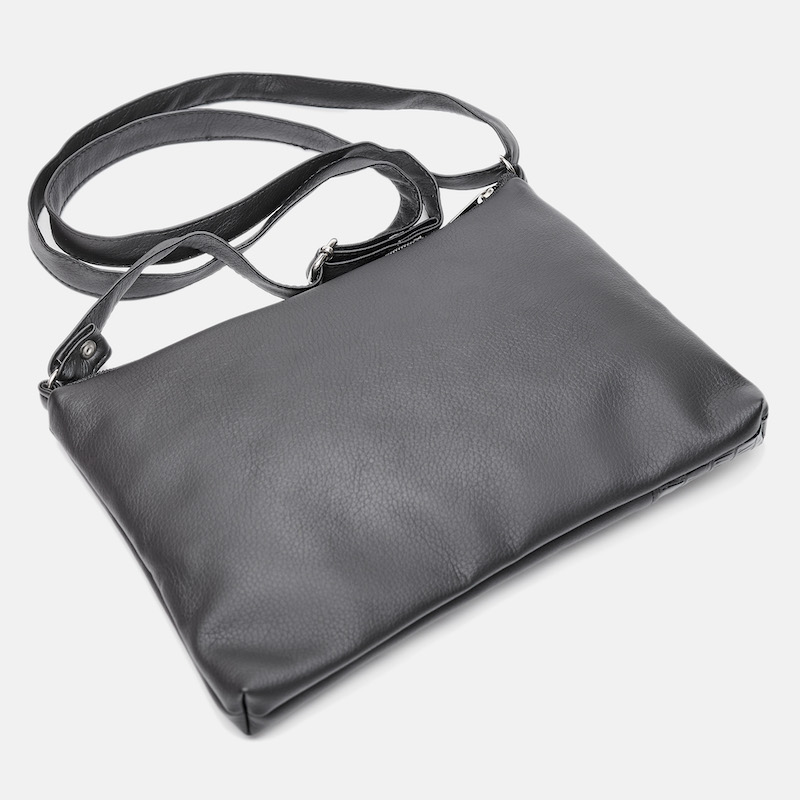 Сумку удобно носить через плечо на прочном удлиненном ремешке. Она снабжена молнией и качественной никелированной фурнитурой, которая не потемнеет и сохранит свой вид. Сдержанный дизайн без ярких деталей долго будет актуальным и идеально дополнит модный образ.