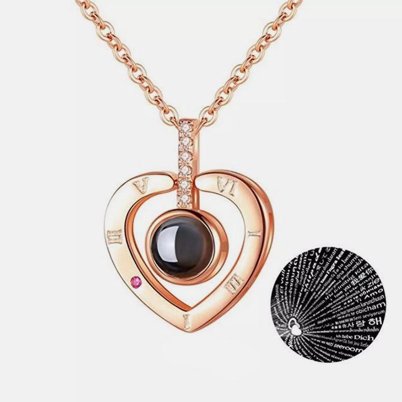 Кулон сердце с проекцией – это оригинальный подарок, который не оставит равнодушной ни одну женщину. Фраза «Я люблю тебя» выполнена на 100 языках; она становится видна, если подсветить фонариком или вывести на экран телефона.