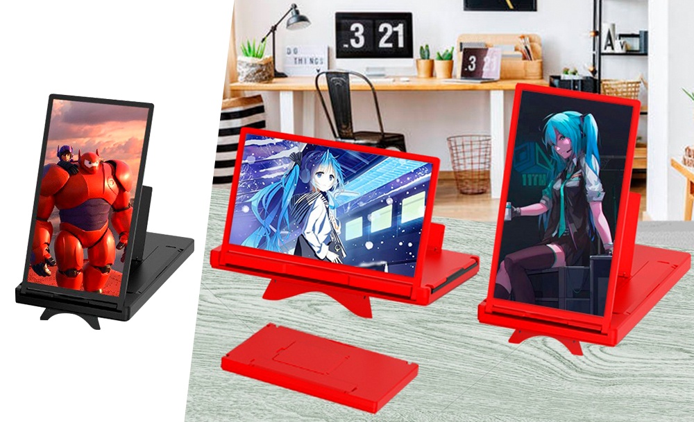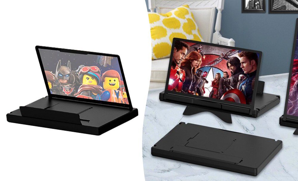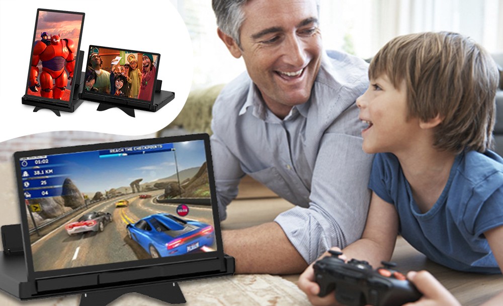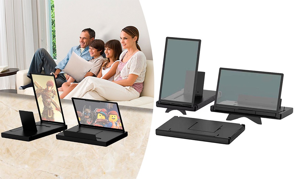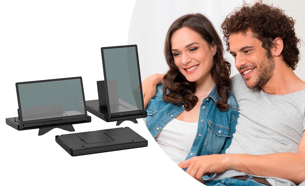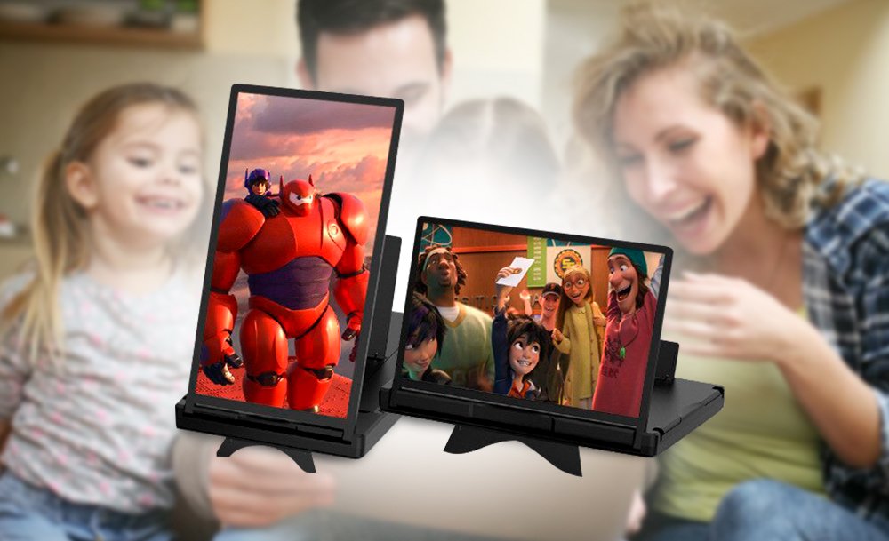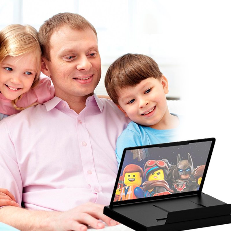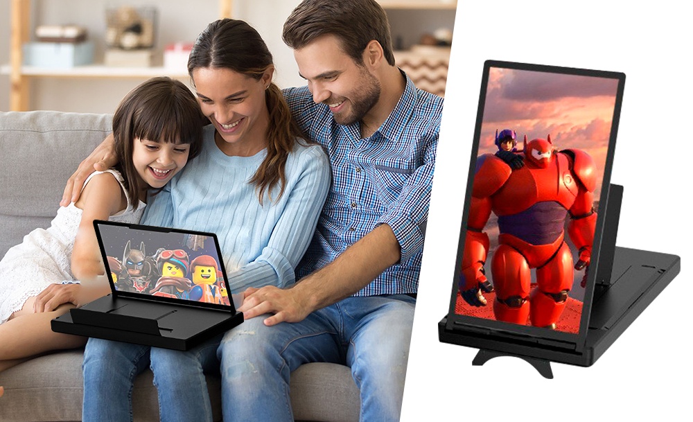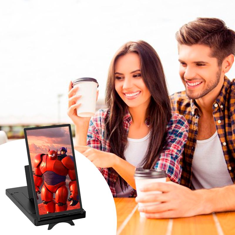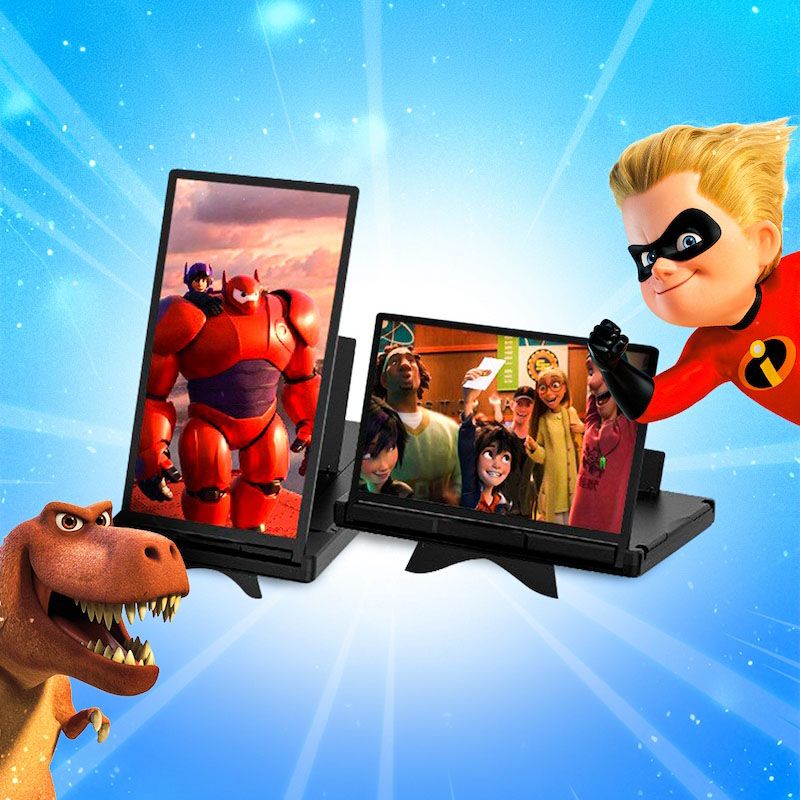 9D збільшувач екрану перетворить телефон на справжній планшет або ноутбук, роблячи зображення більшим в кілька разів. Перегляд улюблених фільмів, читання книг або пошук інформації в інтернеті стане комфортним та безпечним, так як розташування екрану на оптимальній для очей відстані значно знизить їхню стомлюваність і подразнення.