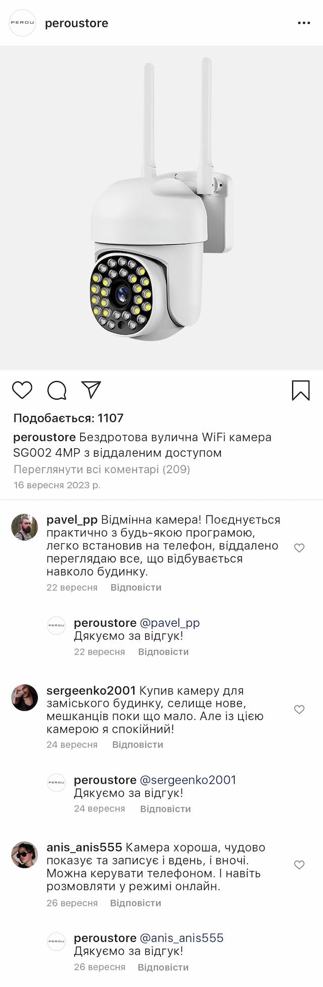 При цьому, виявивши об’єкт, що рухається, камера автоматично відстежує його та повертається на місце після його видалення. Вбудований мікрофон і динамік дозволяють чути звуки у режимі реального часу та навіть спілкуватися з відвідувачем. У камері передбачено 2 види світлодіодів – для денного та для нічного відеоспостереження. Зображення онлайн і в записі залишається чітким та яскравим.