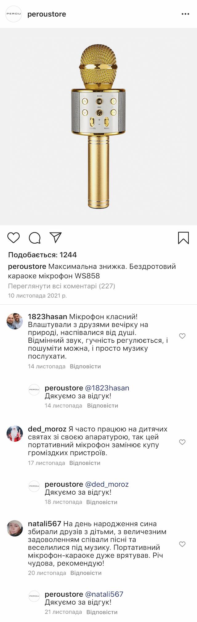 Бездротовий караоке мікрофон WS858 – це універсальний пристрій для любителів співу, що поєднує в собі підсилювач звуку і потужну стерео колонку. Його можна використовувати в будь-якому приміщенні або на вулиці, з друзями, для різноманітних заходів, вечірок та пікніків. Кнопка зменшення шумів на панелі мікрофона дозволяє чути свій голос, насолоджуватися спокійною музикою або підспівувати улюбленому виконавцю.