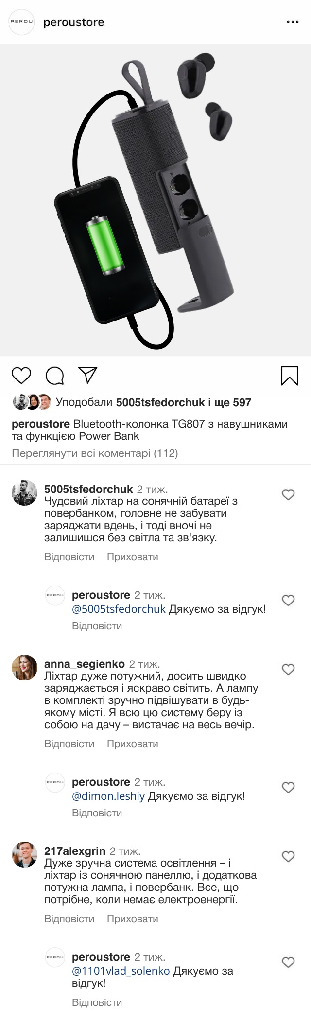 Bluetooth-колонка TG807 з навушниками та Power Bank – це нова акустична система, що поєднує у собі відразу кілька функцій. Потужний динамік та безпровідні TWS навушники з шумопоглинанням забезпечують чистий об’ємний звук. Технологія Bluetooth 5.0 суміщається з будь-якими пристроями, швидко підключається та гарантує стабільний стійкий сигнал.
