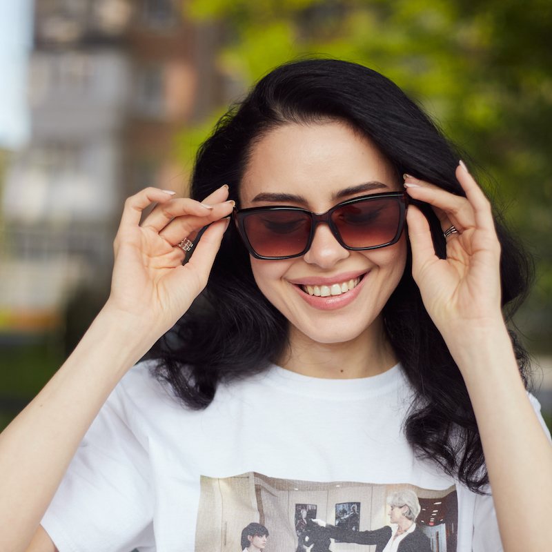 Темні лінзи, виконані з високоякісних матеріалів, надійно захищають від яскравого сонячного світла та ультрафіолетових випромінювань, знімаючи втому та напругу очей. При цьому зображення залишається чітким, контрастним та зберігає насичені кольори.