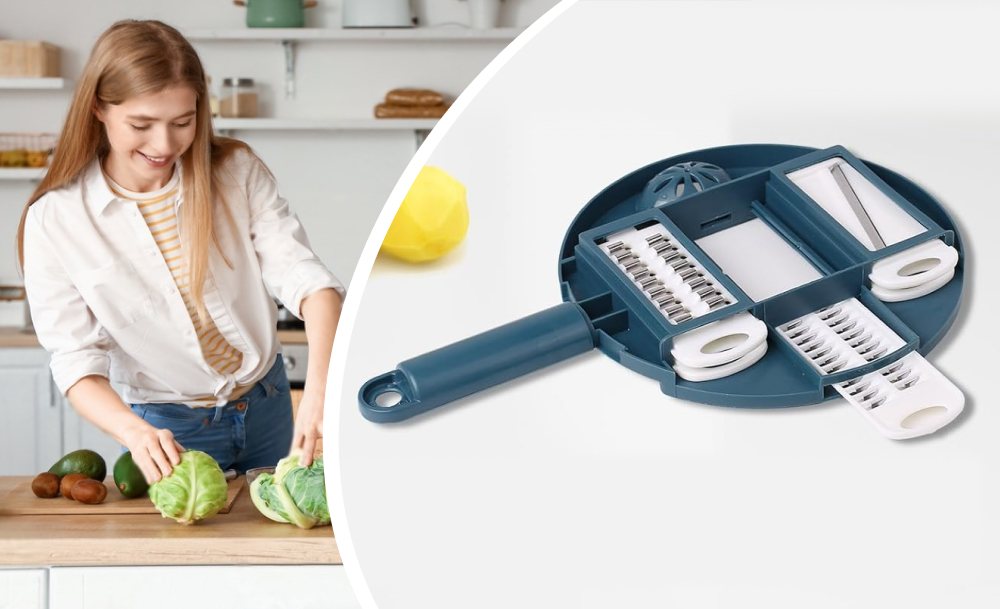 Овочерізка – це сучасне рішення, що дозволяє скоротити час нарізки та полегшити працю господині. Насадки допоможуть подрібнити продукти до потрібного розміру – натерти на дрібній тертці тверді сири та горіхи, порізати крупніше сирі та варені овочі для салату або пошаткувати слайсами.