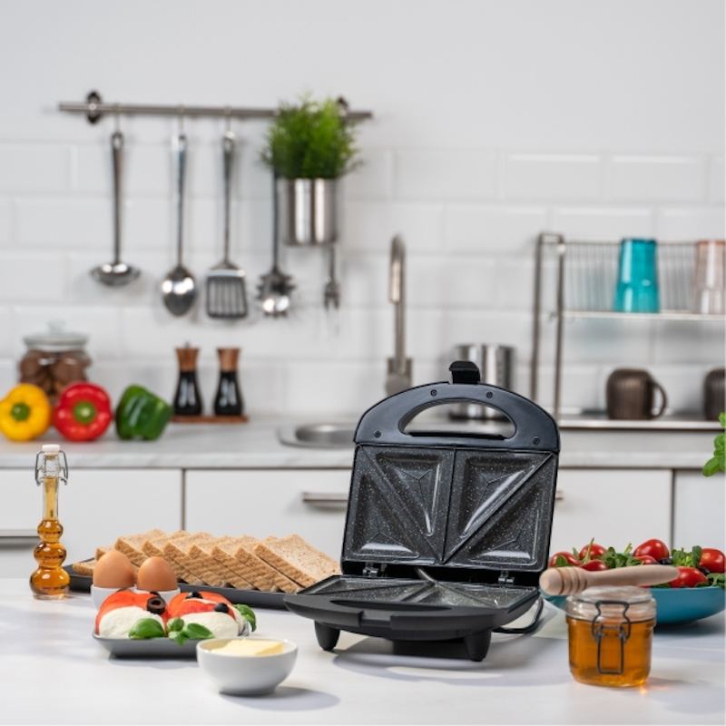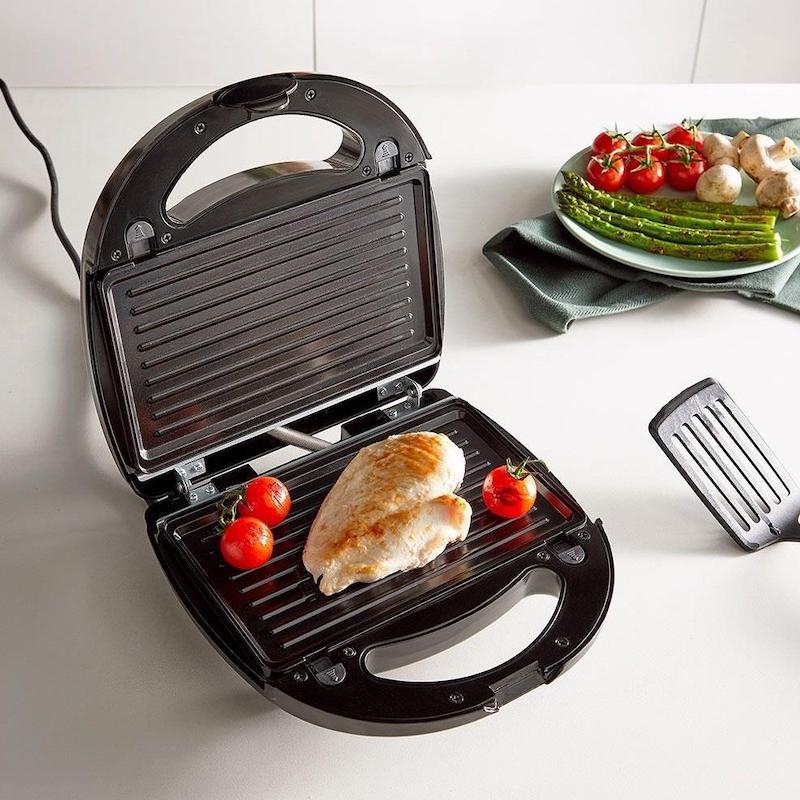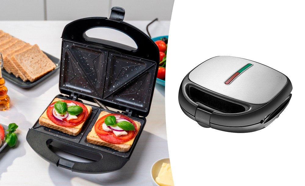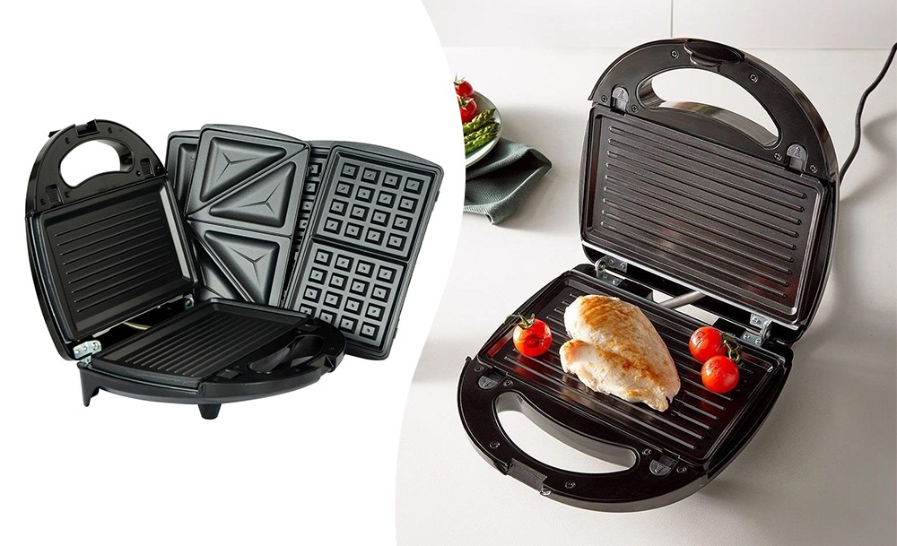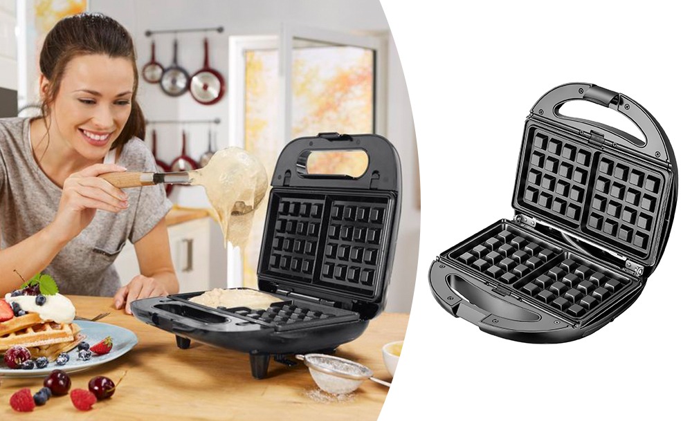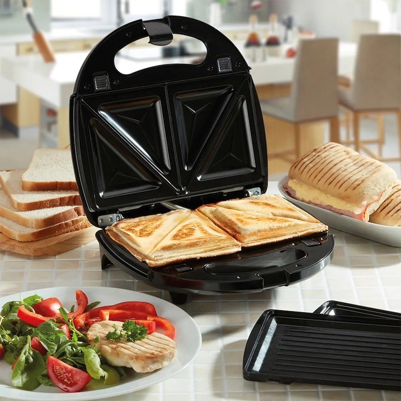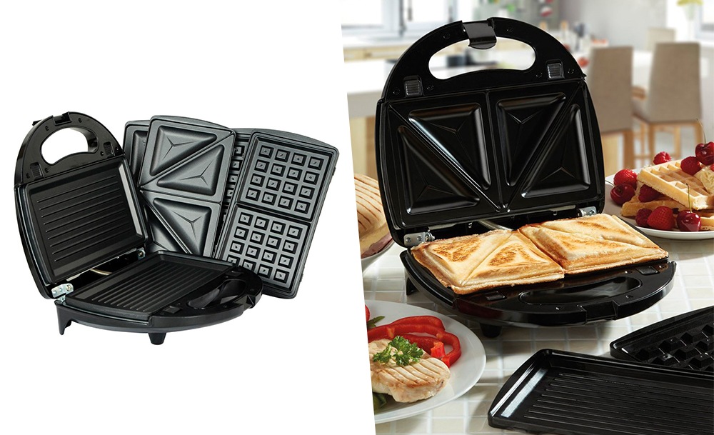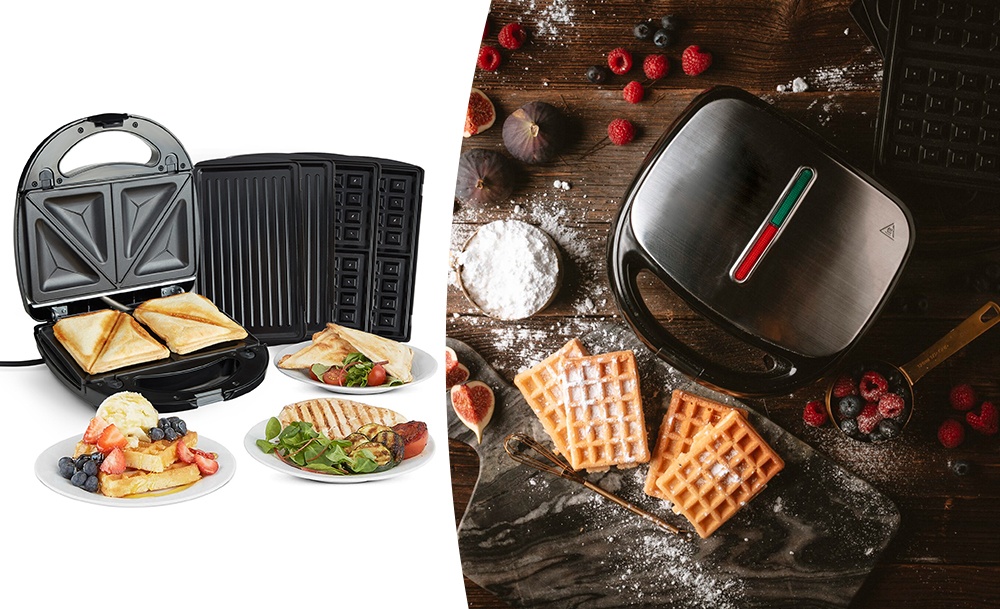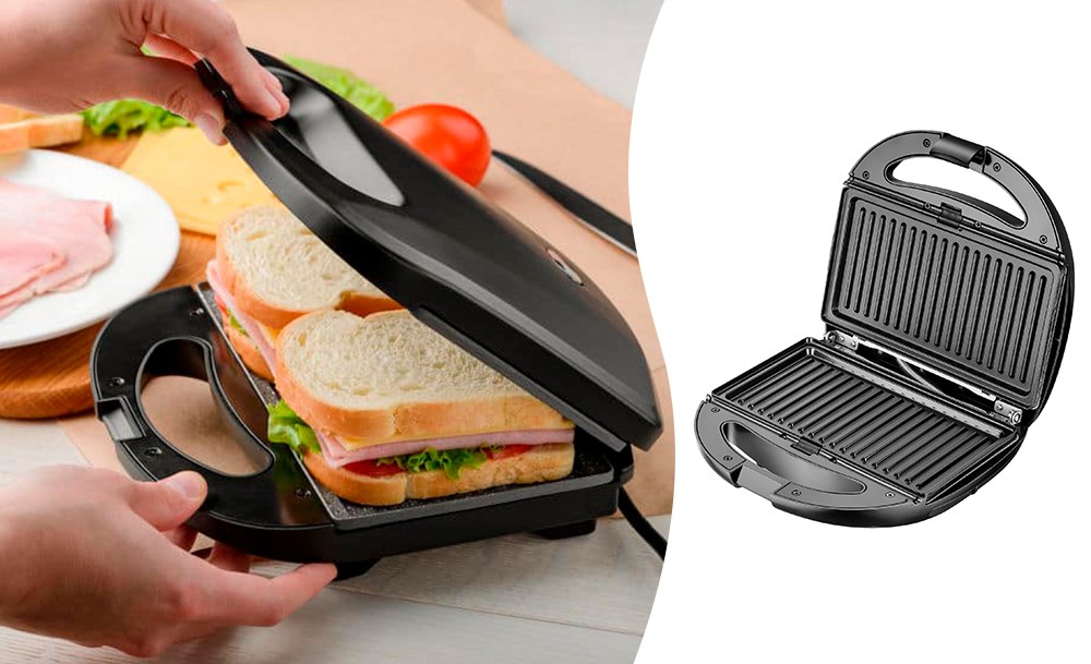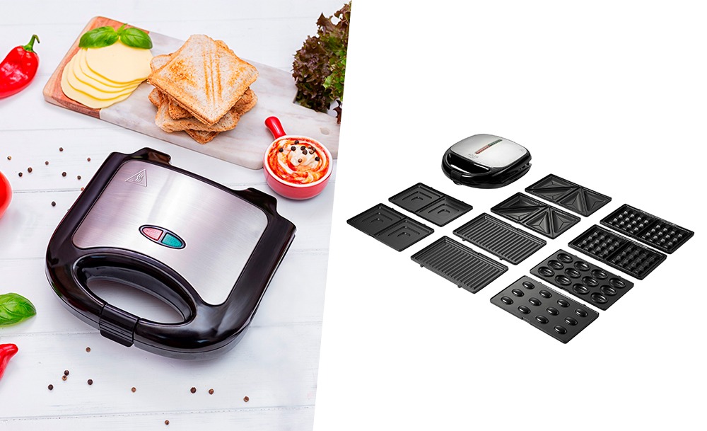 Гриль, бутербродниця, вафельниця, горішниця 4 в 1 – це незамінний багатофункціональний прилад, що дозволяє приготувати улюблені страви в домашніх умовах. За допомогою змінних насадок з антипригарним покриттям можна легко зробити тости для бутербродів, м’які бельгійські вафлі або формочки для горіхів; посмажити на грилі м’ясо, ковбаски та овочі.