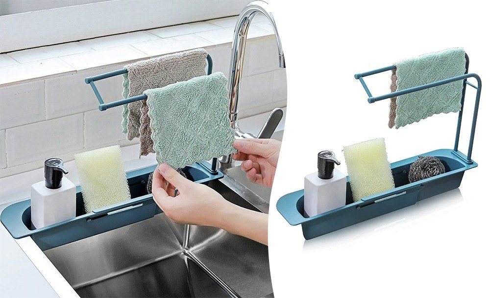 Два товари по ціні одного. Кошик для раковини – чудовий органайзер для підтримки чистоти та порядку на кухні. Він дозволяє зручно впорядкувати губки, йоржики та миючі засоби, і оснащений спеціальною планкою для сушіння рушників та ганчірок.