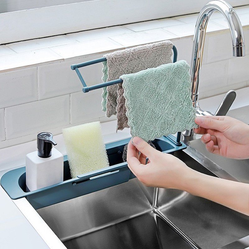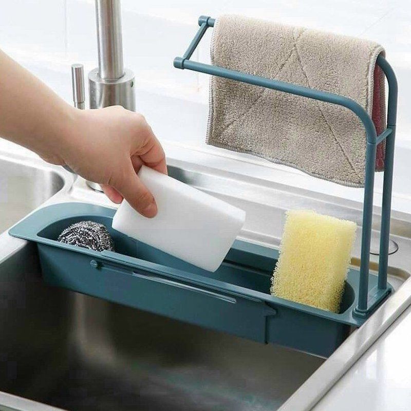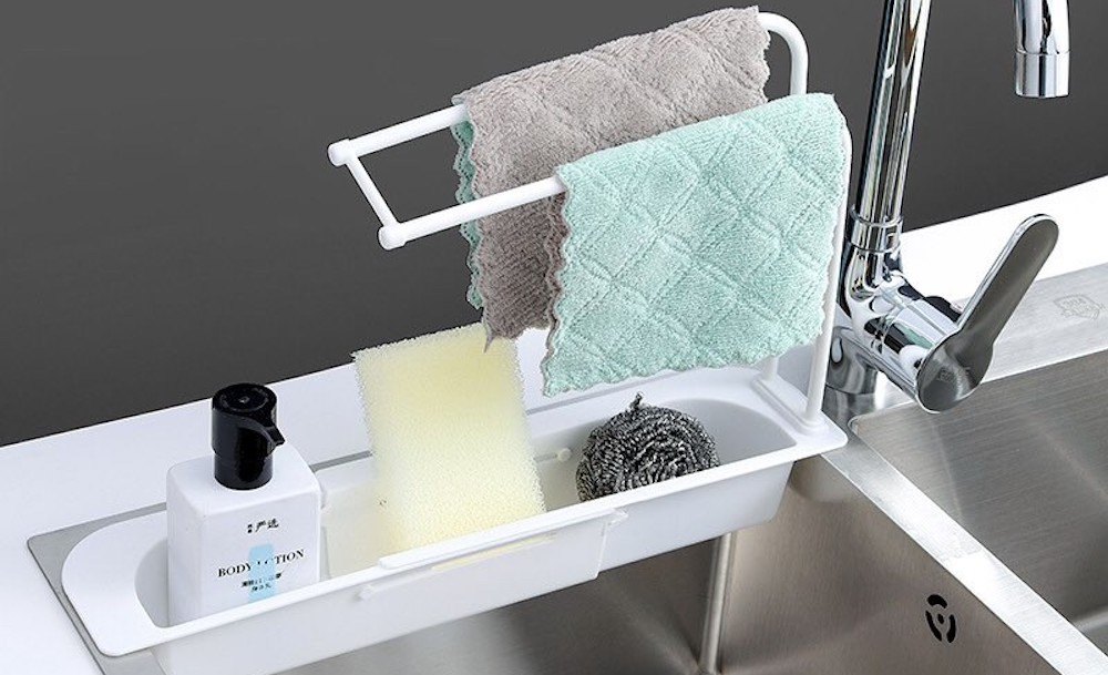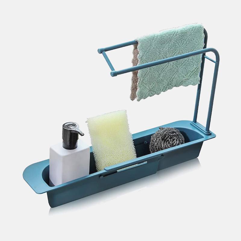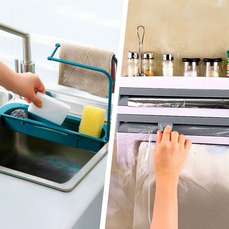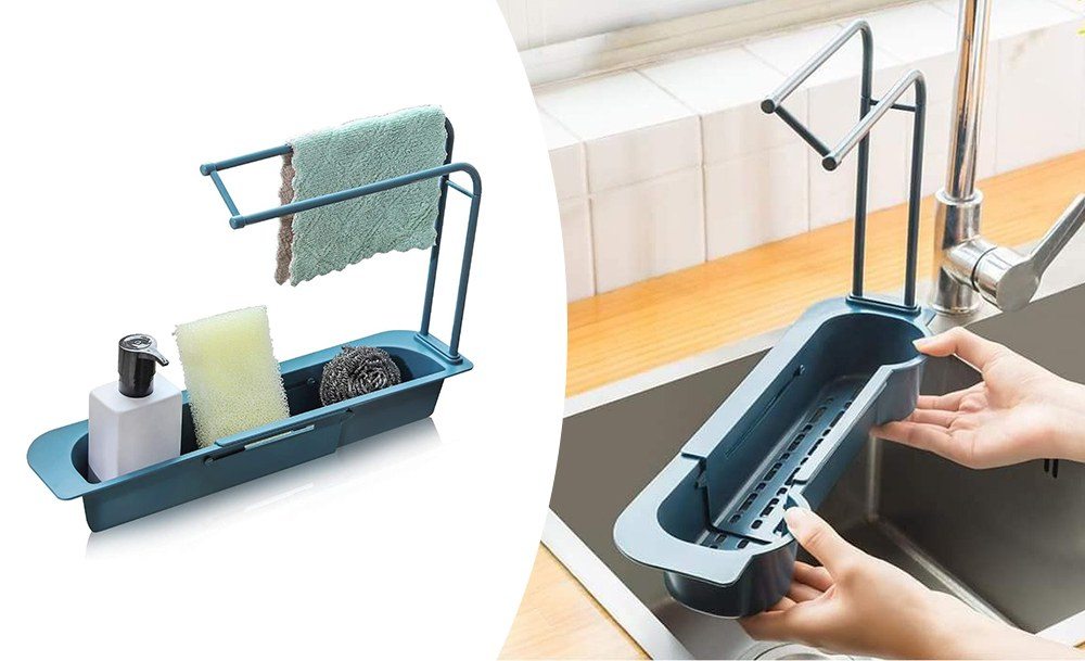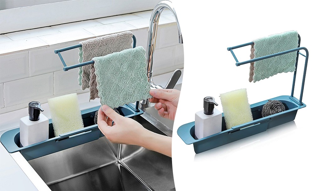 Кошик для раковини дозволяє зручно впорядкувати губки та ганчірки, а також зливати рідкі харчові відходи, запобігаючи засміченню кухонних труб.