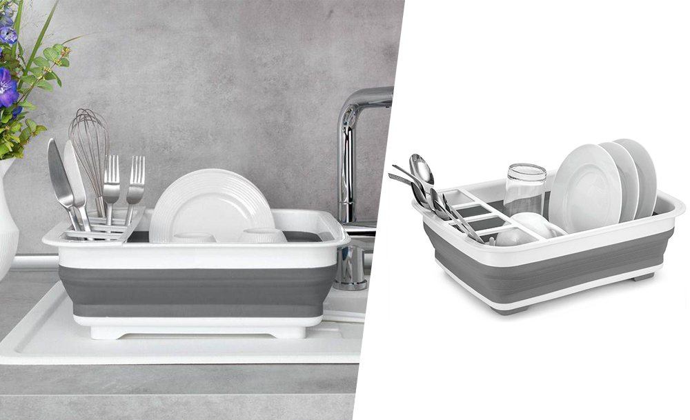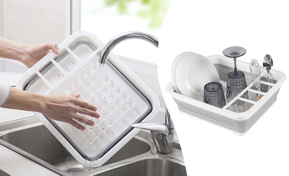 Зручний кухонний тримач неабияк полегшить життя господиням! Можна використовувати для харчової плівки, фольги та паперових рушників. Силіконова розкладна сушарка для посуду оснащена решіткою і спеціальним дном для вертикальної установки кухонного приладдя та тарілок.