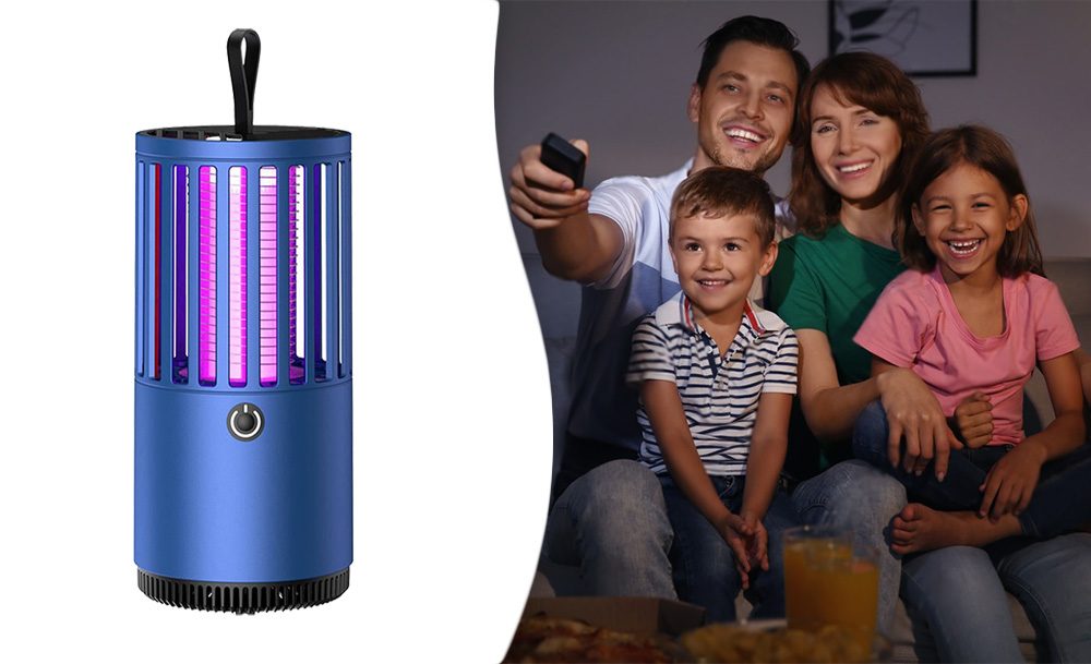 Цей вбивця комарів генерує світло, щоб заманити комарів наблизитися. Потім вітер, що генерується потужним турбодвигуном, швидко втягує комарів. Нікельована сітка з нержавіючої сталі SUS випускатиме високовольтний удар, щоб миттєво вбивати комарів.
