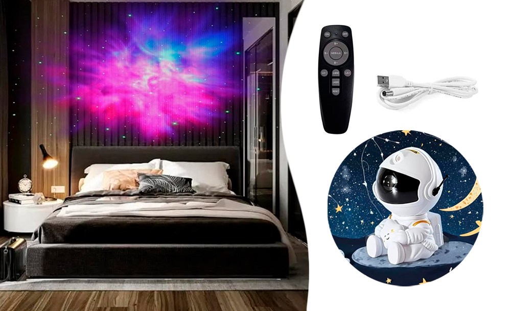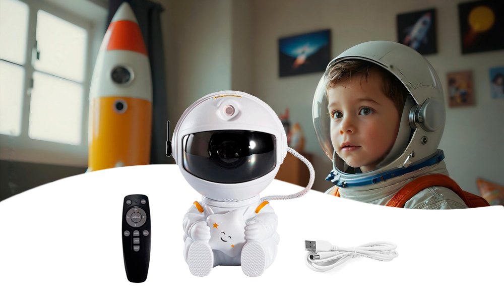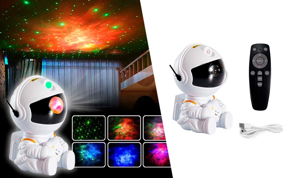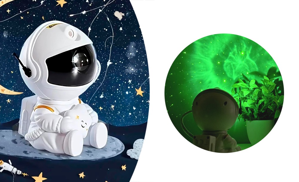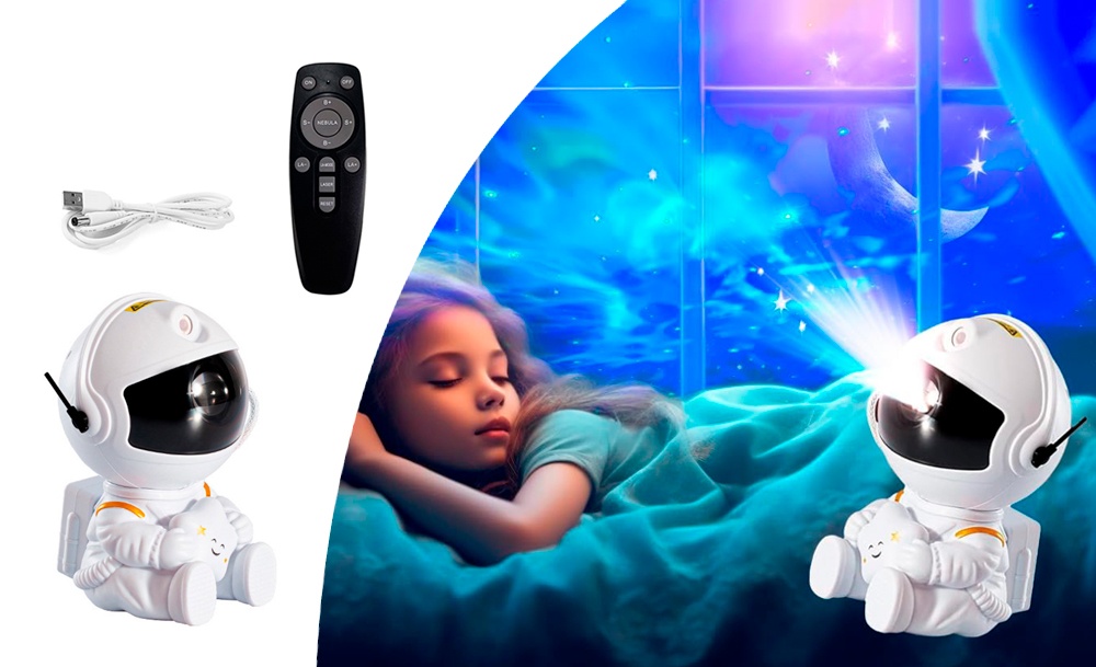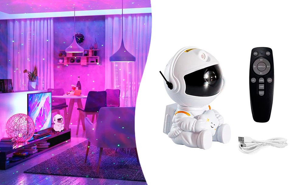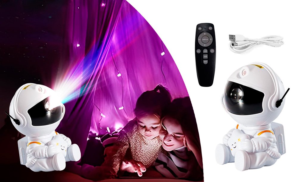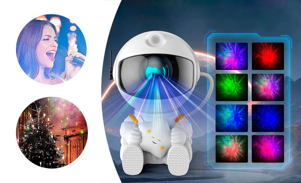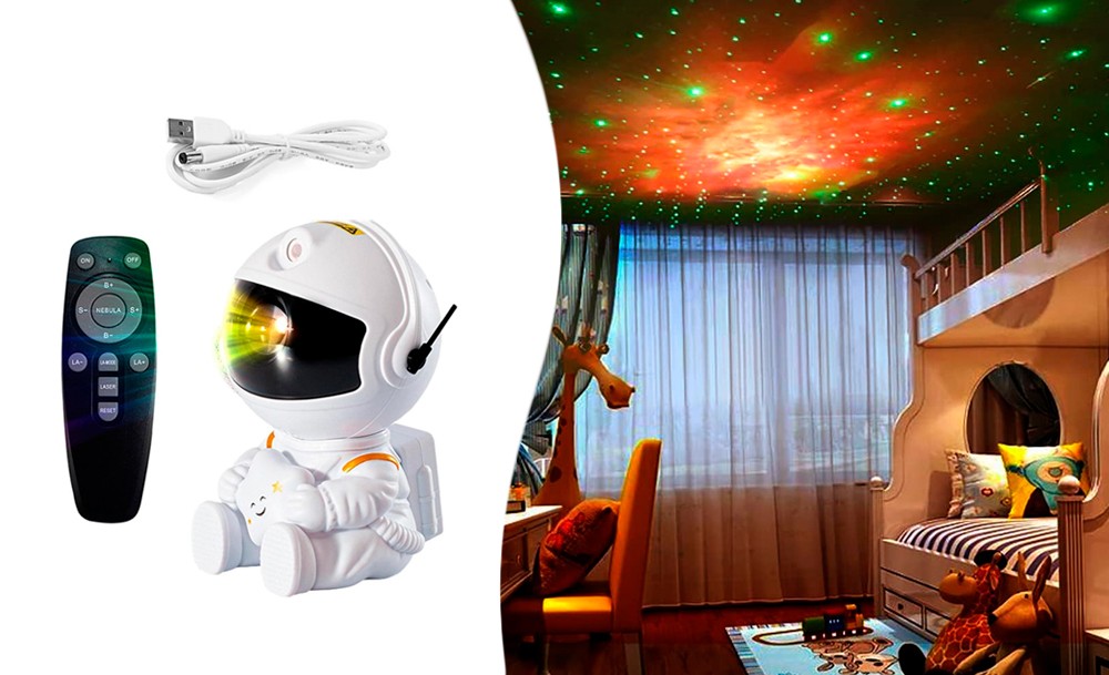 Лазерний проектор галактики Астронавт на місяць стане чудовим нічником для юних підкорювачів космосу, і однією з найулюбленіших іграшок! 8 яскравих різнокольорових зображень галактики оживлятимуть та прикрашатимуть не лише дитячу, а й вечірку, сімейний перегляд кіно чи ігрову кімнату.