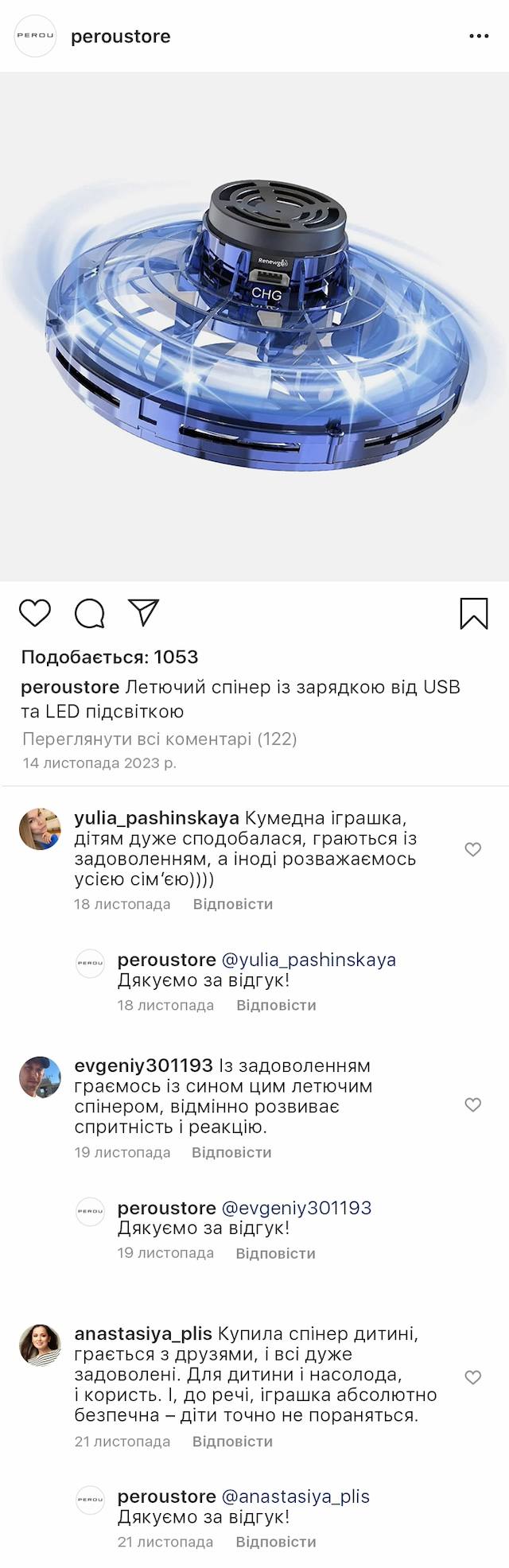 Летючий спінер – це ідеальна іграшка, що розвиває спритність, уважність, швидку реакцію та координацію рухів. Для дитини та її друзів це не лише задоволення та незабутні враження, але й користь у процесі гри вдома чи на вулиці.