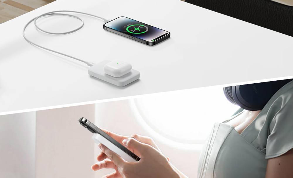 Працює з усіма вашими ґаджетами: iPhone, Android, навушниками, смарт-годинниками. Ідеально підходить для подорожей — не займає багато місця, легко поміщається в сумці чи рюкзаку. Магніт тримає надійно навіть у русі. Можна заряджати кілька пристроїв одночасно. А ще він стильний — чудово виглядає як у руці, так і на столі.