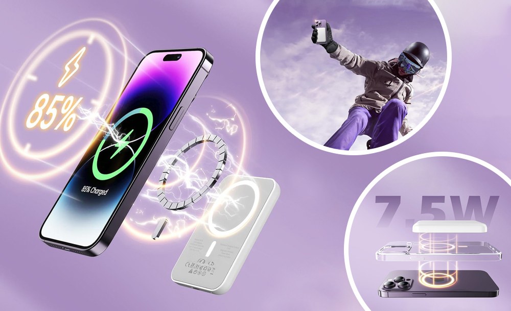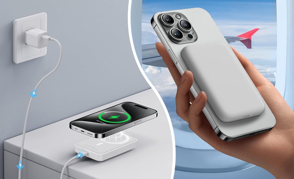 Компактний і потужний павербанк з магнітним кріпленням — заряджайте без дротів і зайвих рухів. Ємність 10 000 мА·г, швидка зарядка 22,5 Вт. Просто прикріпіть пристрій — і зарядка починається автоматично.